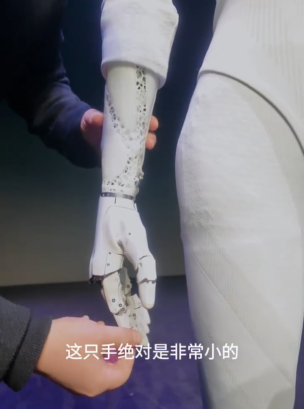 何小鹏今天直接一镜到底了,手指、背部都可以清楚看到机械结构,关于大家争议的耳朵轮廓,左右都有麦克风阵列,像人一样“听觉”,肩膀还有运输的固定器。