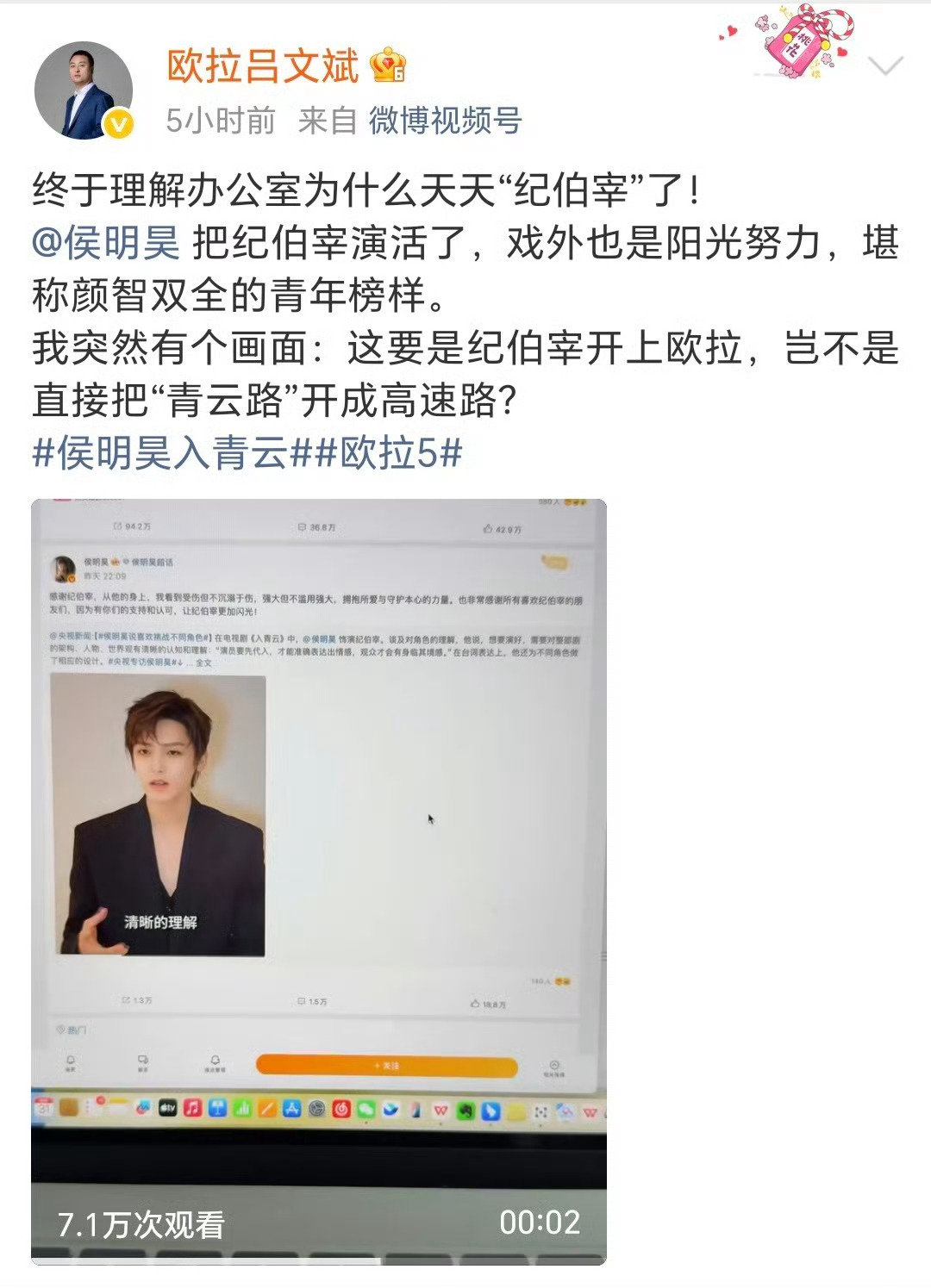 侯明昊车代要来了,车代也是检验大爆生的标准之一,名号入青云有效播剧。之前boss