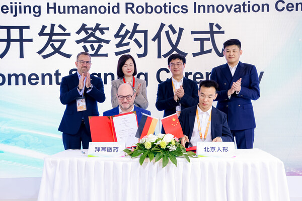 上海2025年11月6日/美通社/--第八届中国国际进口博览会(简称"进博会")期间,拜耳医药保健有限公司(以下简称"拜耳医药")与北京人形机器人创新中心有限公司(以下简称"北京人形")签署合作协议,承诺共同推动人形机器人及具身智能技术在固体药品制造生产、包装、质量控制、仓储及物流等场景的技术开发。