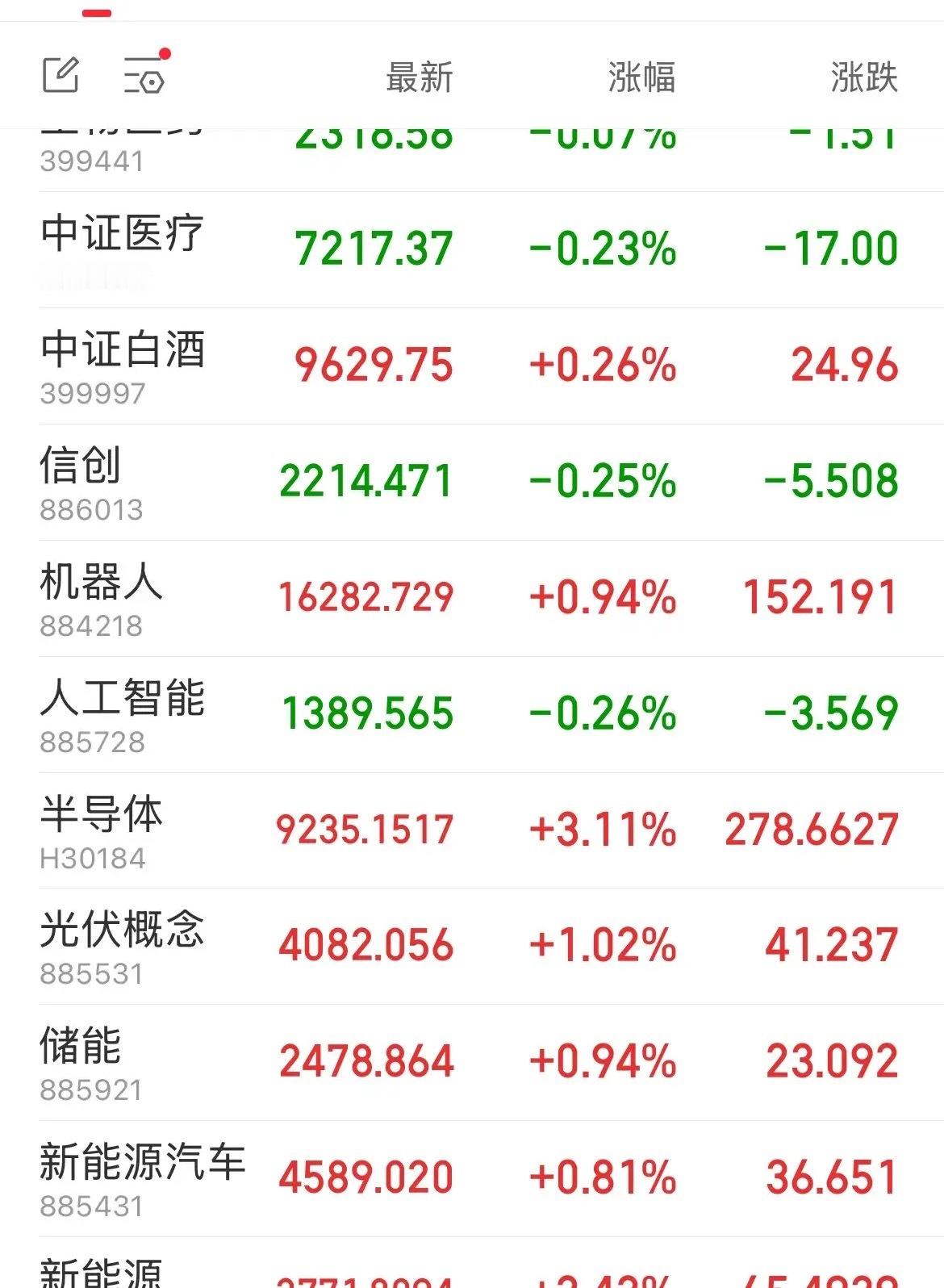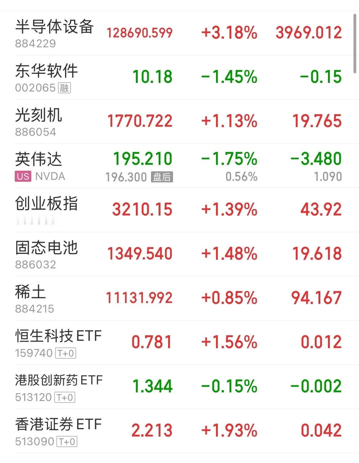 不管科技还是新能源的上涨,创业板总是不会缺席的,昨天新能源大涨,今天半导体大涨,固态电池、CPO概念也是涨幅超1%,