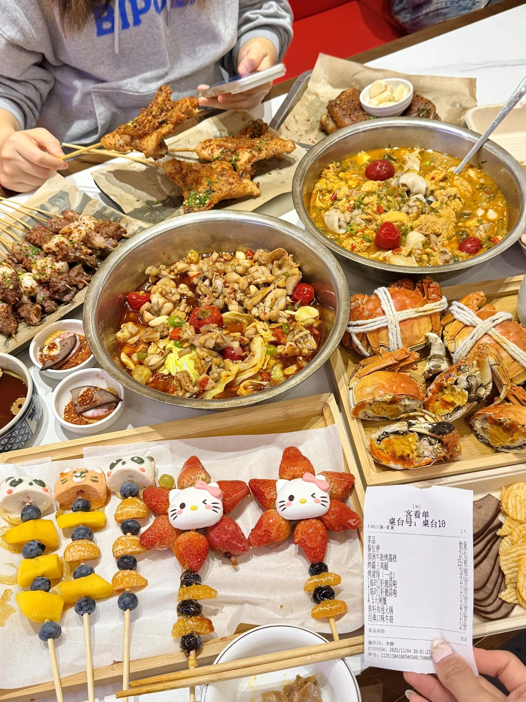 慕名而来真的好好吃!难怪这么晚还好多人排队!就在四方坪……附近学生党打工族都会去吃的大排档!没啥环境生意依旧好火 烧烤均价2~6r!推荐荔枝牛肋条一口惊艳!蟹个头又大又饱满!!吃得出的品质好好👍🏻还有固体杨枝甘露、奶皮子冰糖葫芦……好多小吃甜品🥹一吃一个不吱声(叫:西西家