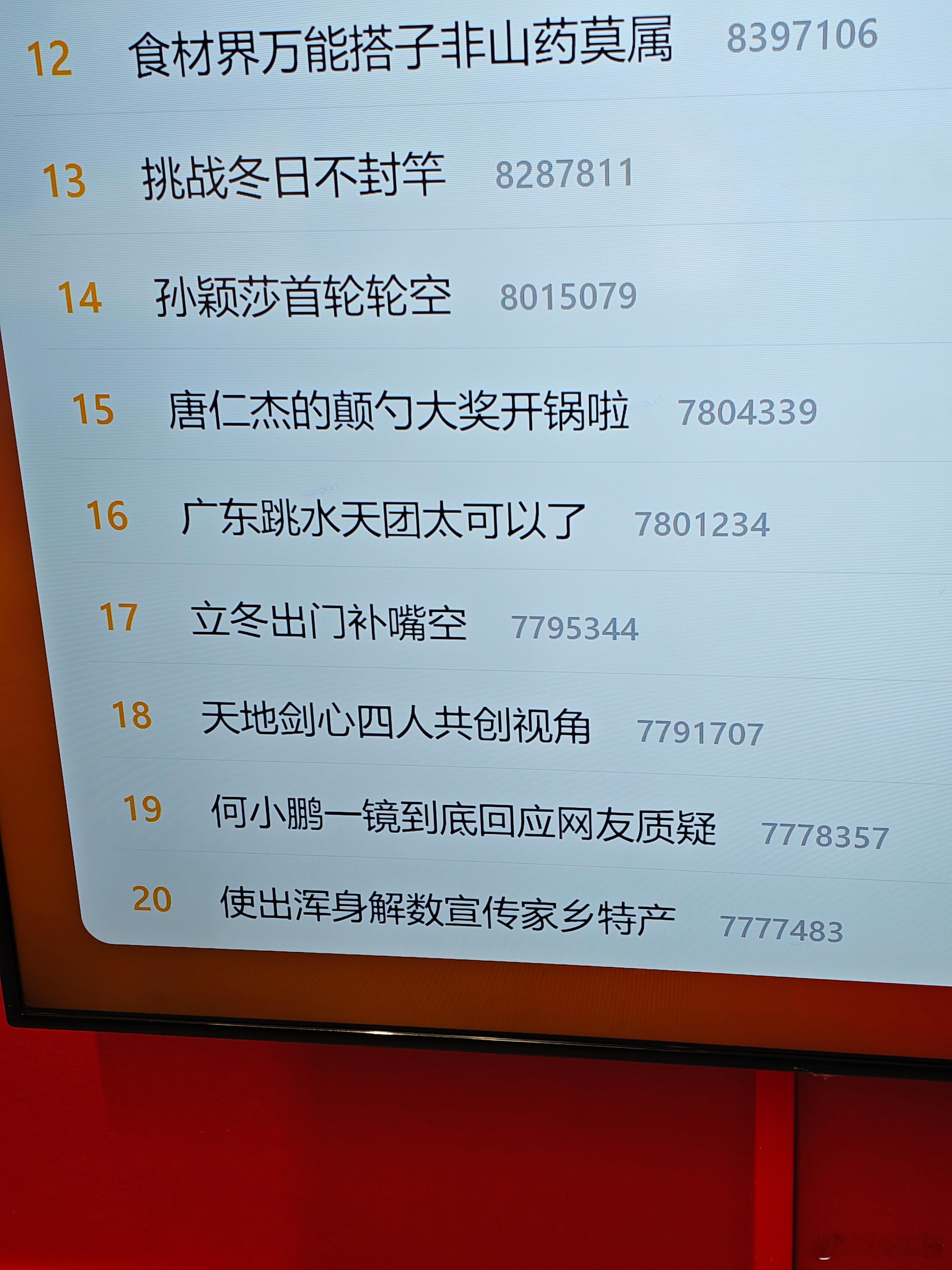 在小鹏总部的热搜榜屏幕上发现了小鹏自己的热搜[666][666]小鹏x9超级增程
