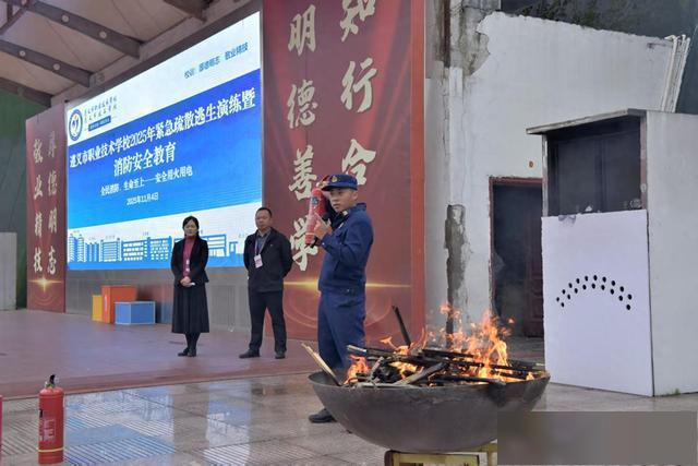 为强化师生消防安全意识,提升应急避险与自救互救能力,11月4日,遵义市职业技术学校联合董公寺消防救援站组织开展紧急疏散逃生演练暨消防安全教育活动。全校4000余名师生参与此次活动,通过实战化演练与专题培训相结合的方式,筑牢校园安全防线。