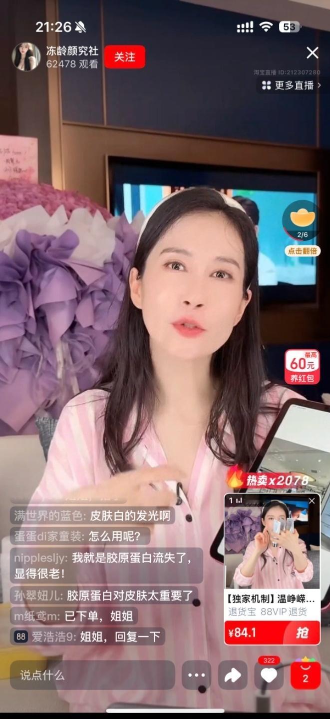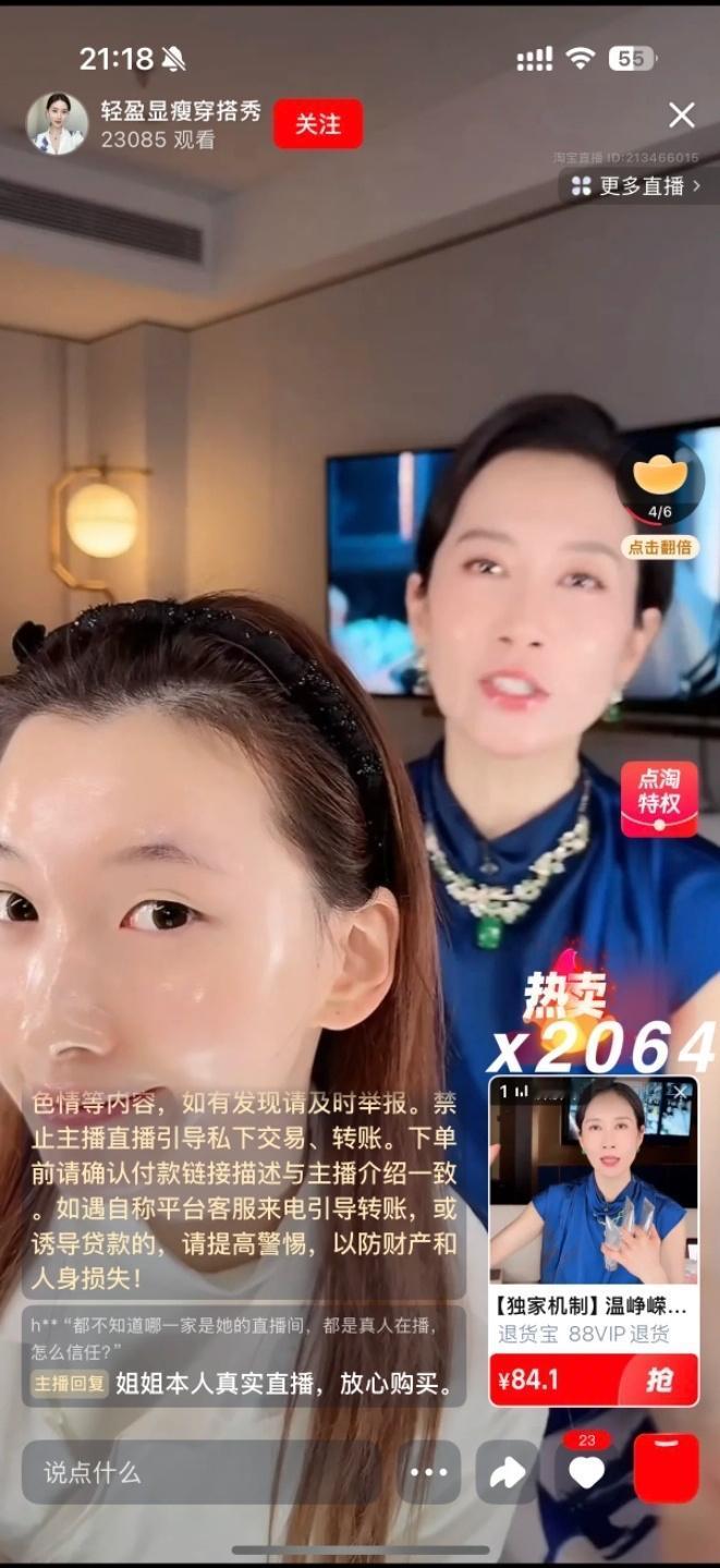 最近演员温峥嵘遇到一件魔幻事: 她发现自己的分身, 同时出现在三个直播间卖货