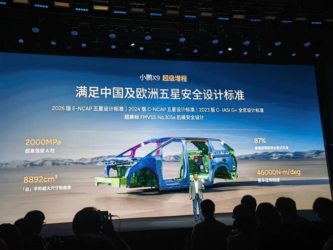 安全方面,小鹏X9作为一款面向全球市场的车型,还进行了800天的跨国测试,以2000万公里实地测试确保产品在全球各地区的全场景可靠性与安全性。