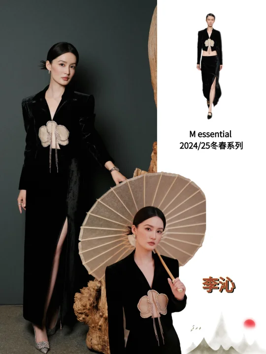 李沁在其他活动中也穿了M essential的定制流苏钉珠丝绒套装,手撑一把油纸伞,优雅大气与姐的气质很搭~