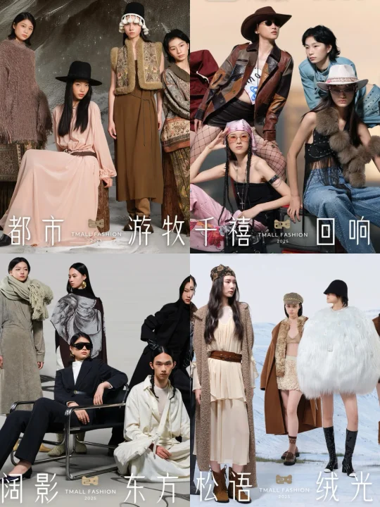 除了阔影东方,此次2025天🐱服饰还有 都市游牧、松语绒光、千禧回响三大秋冬服饰趋势,四种别样风格,总有一款符合你的心意💝