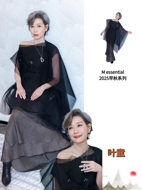 叶童老师则身着M essential的立体梅枝钉珠薄纱罩衫,内搭提花连衣裙套装,举手投足皆神韵。