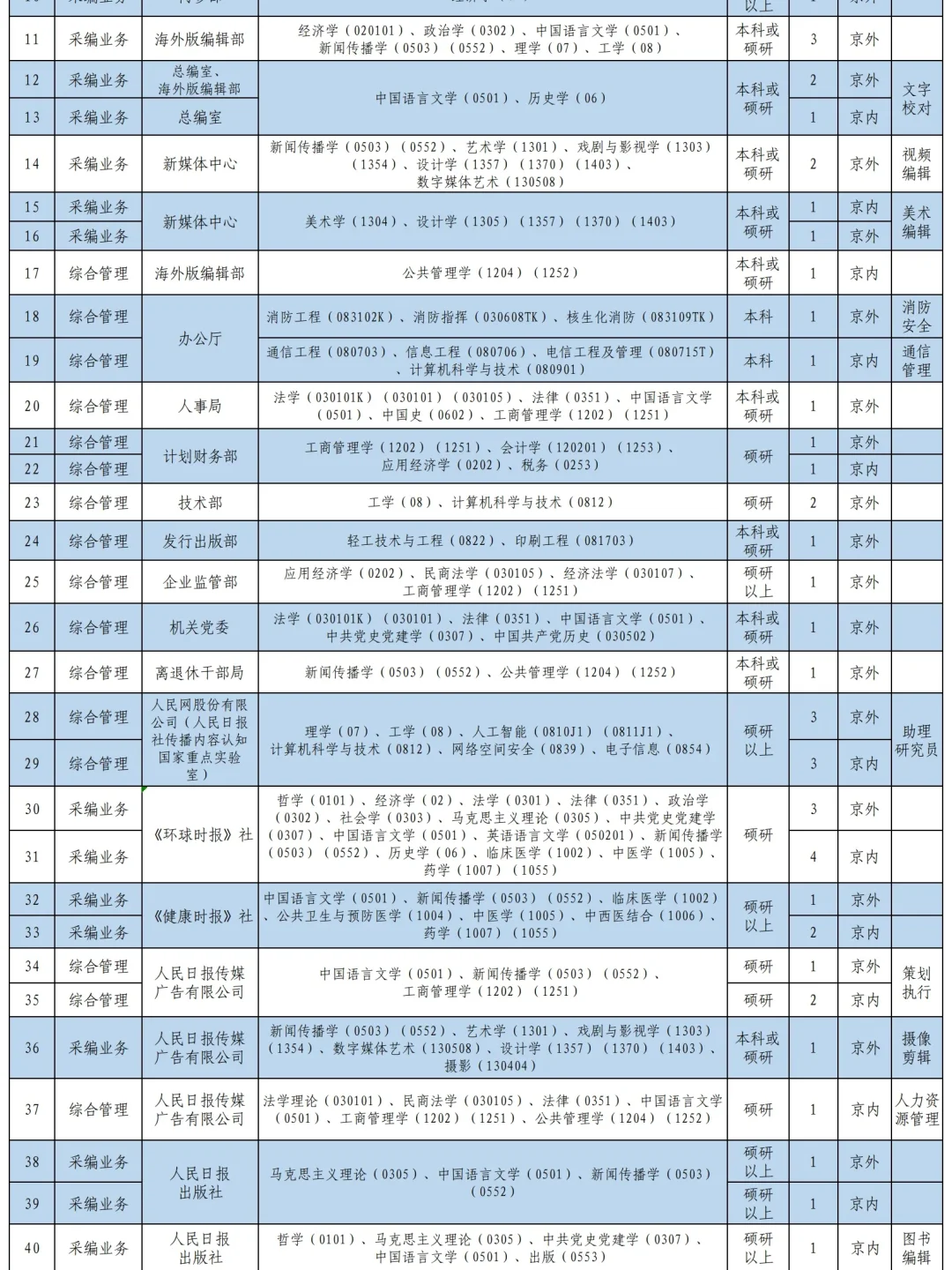 ✅秋招来了,媒体单位校招的脚步又近了一步,上图是人民日报社去年的岗位名单,同学们可以参考一下。
