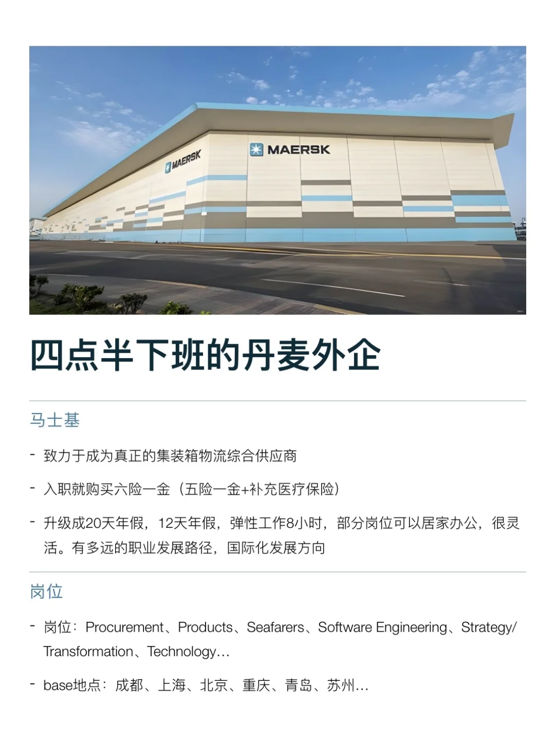 像马士基(Maersk)、代斯米(DESMI)、诺维信(Novozymes)这些丹麦外企,都属于那种低调但超稳的公司——全球业务、管理成熟、氛围轻松,不太卷,工作节奏也很人性化。