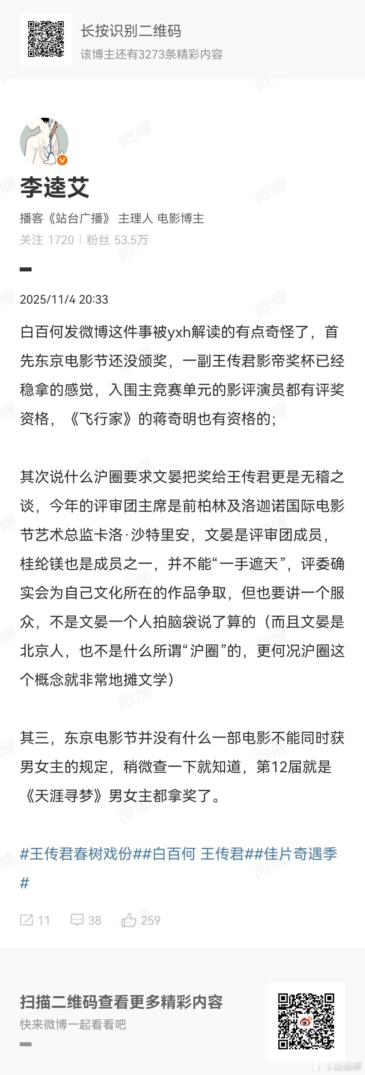 王传君纯属躺枪 王传君纯属躺枪,因为这个影帝也是评委评,整件事情从头到尾,其实他是最无辜的一个人,但是确实被追着骂了好几天!