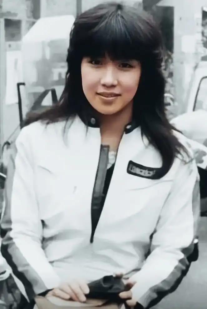 年轻时的高市早苗。长发飘飘。五官很立体。衣着很时尚。人长得很漂亮。但是再