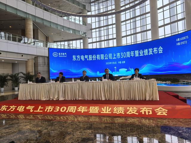 时值公司A股上市30年之际,11月6日,东方电气(600875)上市30周年暨业绩发布会在成都举行。证券时报·e公司记者现场看到,东方电气集团党组书记、董事长,股份公司(即东方电气)董事长罗乾宜携上市公司多位高管出席会议。来自中信证券、中金公司、汇丰银行等诸多机构的数十名投资者参加活动。