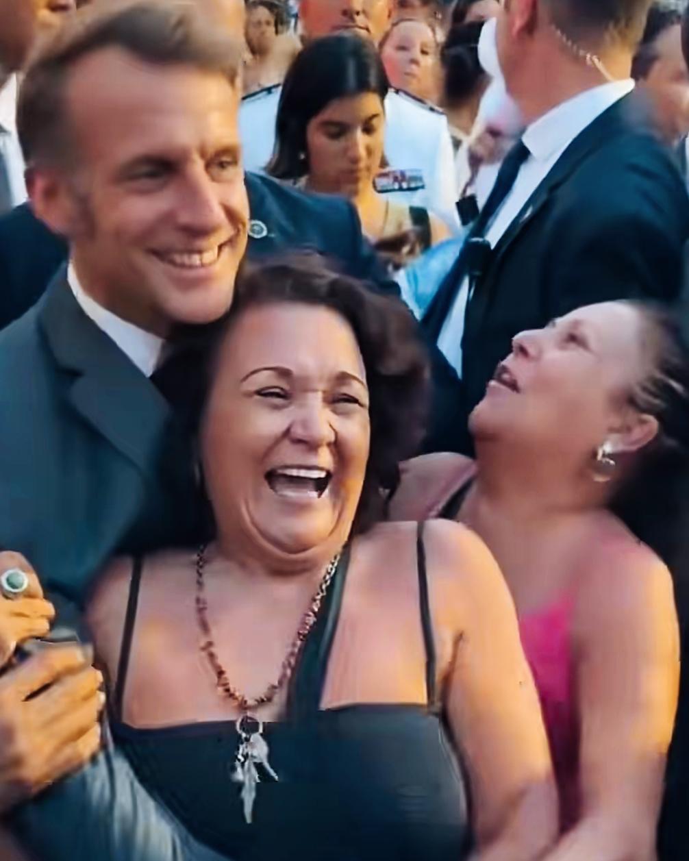 马克龙是不是回家又要挨媳妇批评了? 马克龙面对这么热情的女子,也是没有办法拒绝啊! 想推都推不开啊!