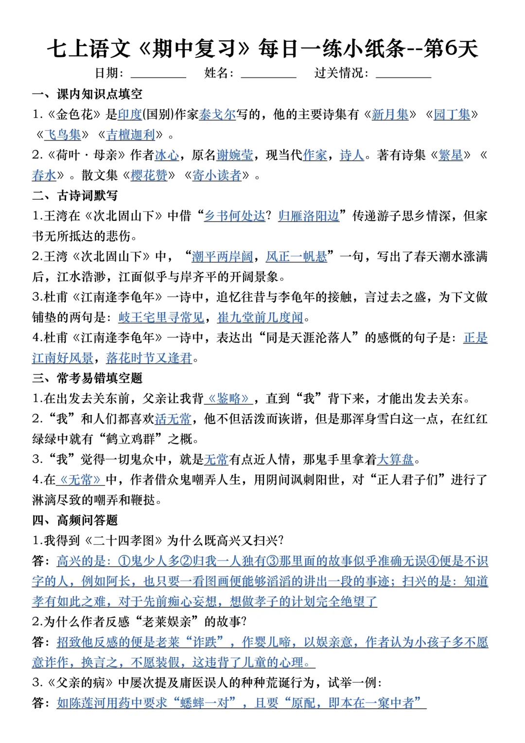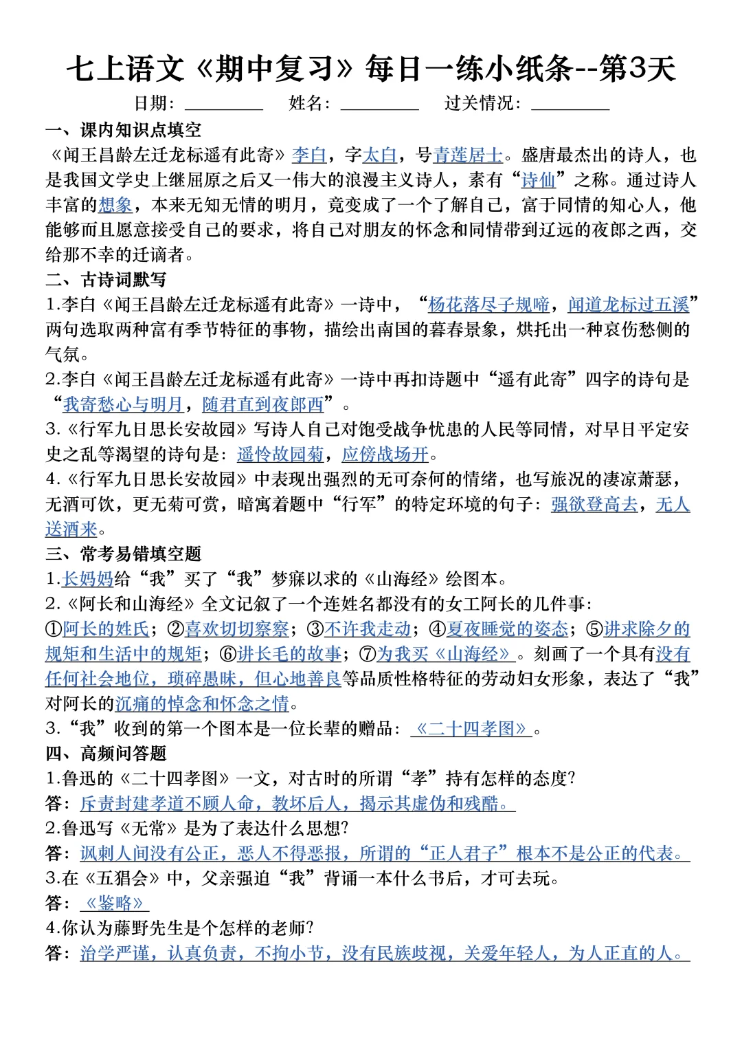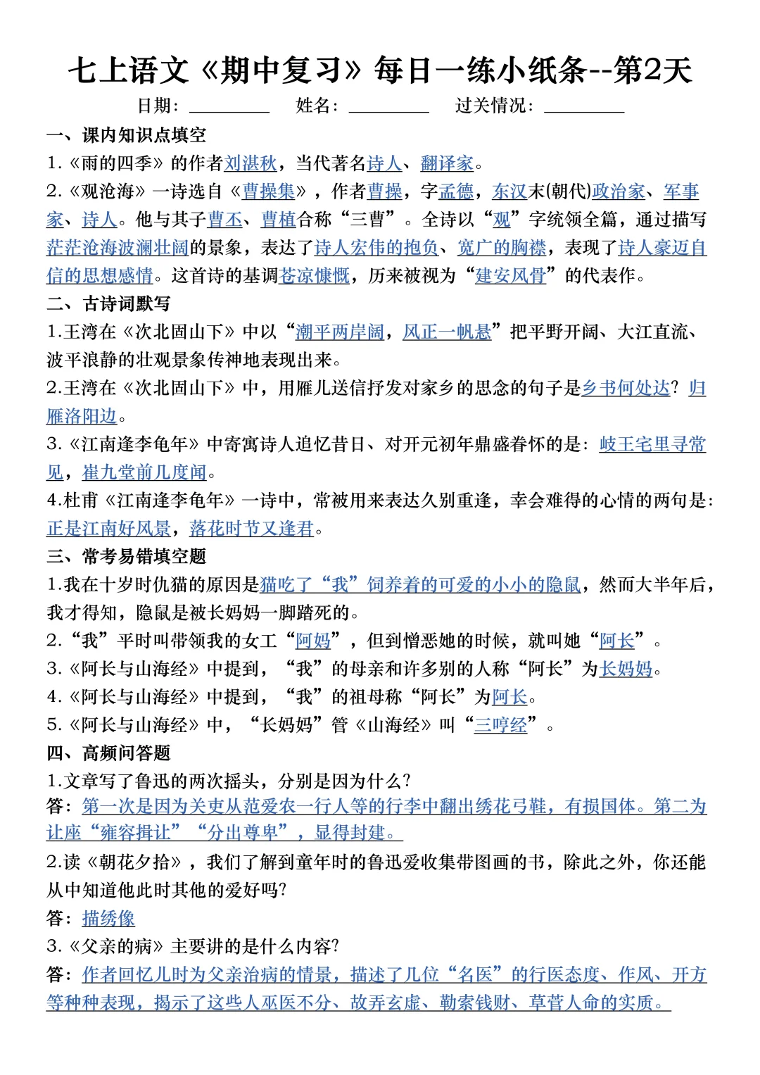 家长收藏孩子受益 七年级 初中语文怎么学 初中语文 初一 七年级上册语文七上语文初一语文 期中考试 期中复习提高孩子学习成绩