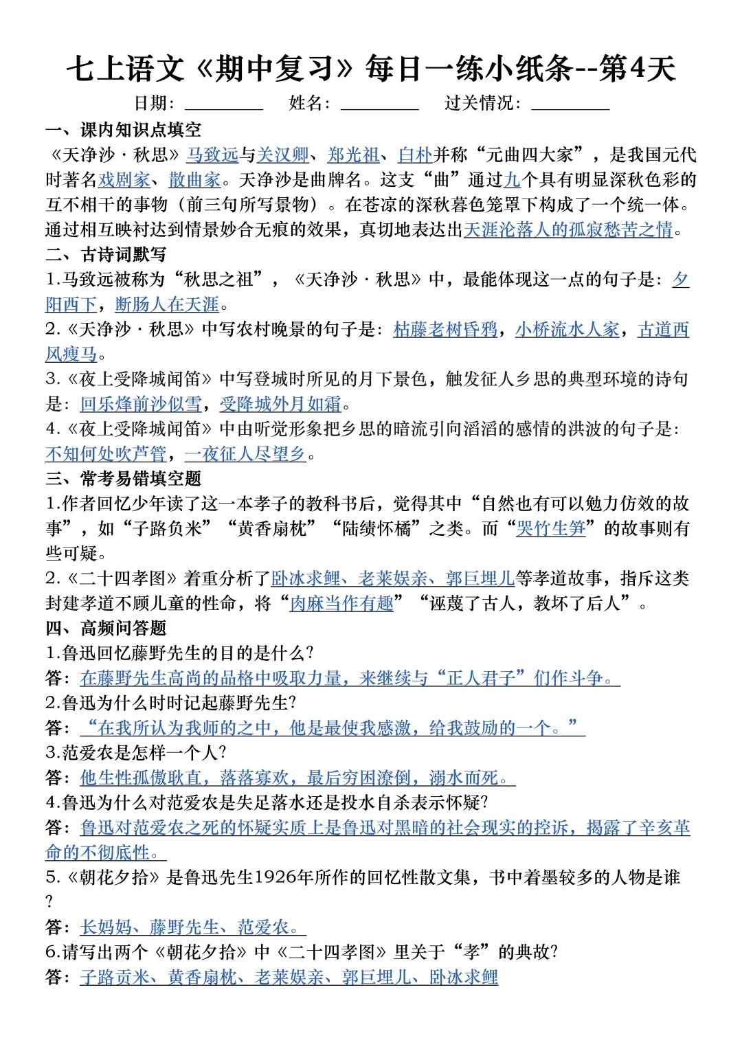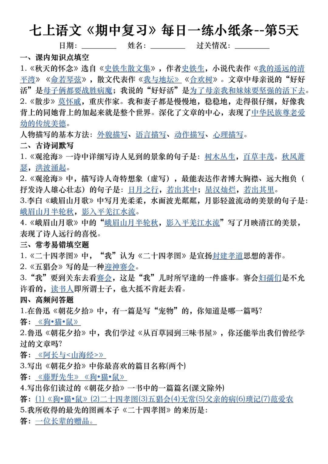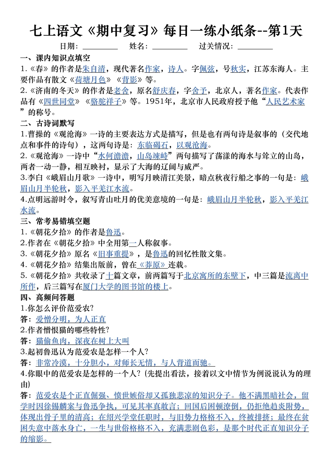 家长收藏孩子受益 七年级 初中语文怎么学 初中语文 初一 七年级上册语文七上语文初一语文 期中考试 期中复习提高孩子学习成绩