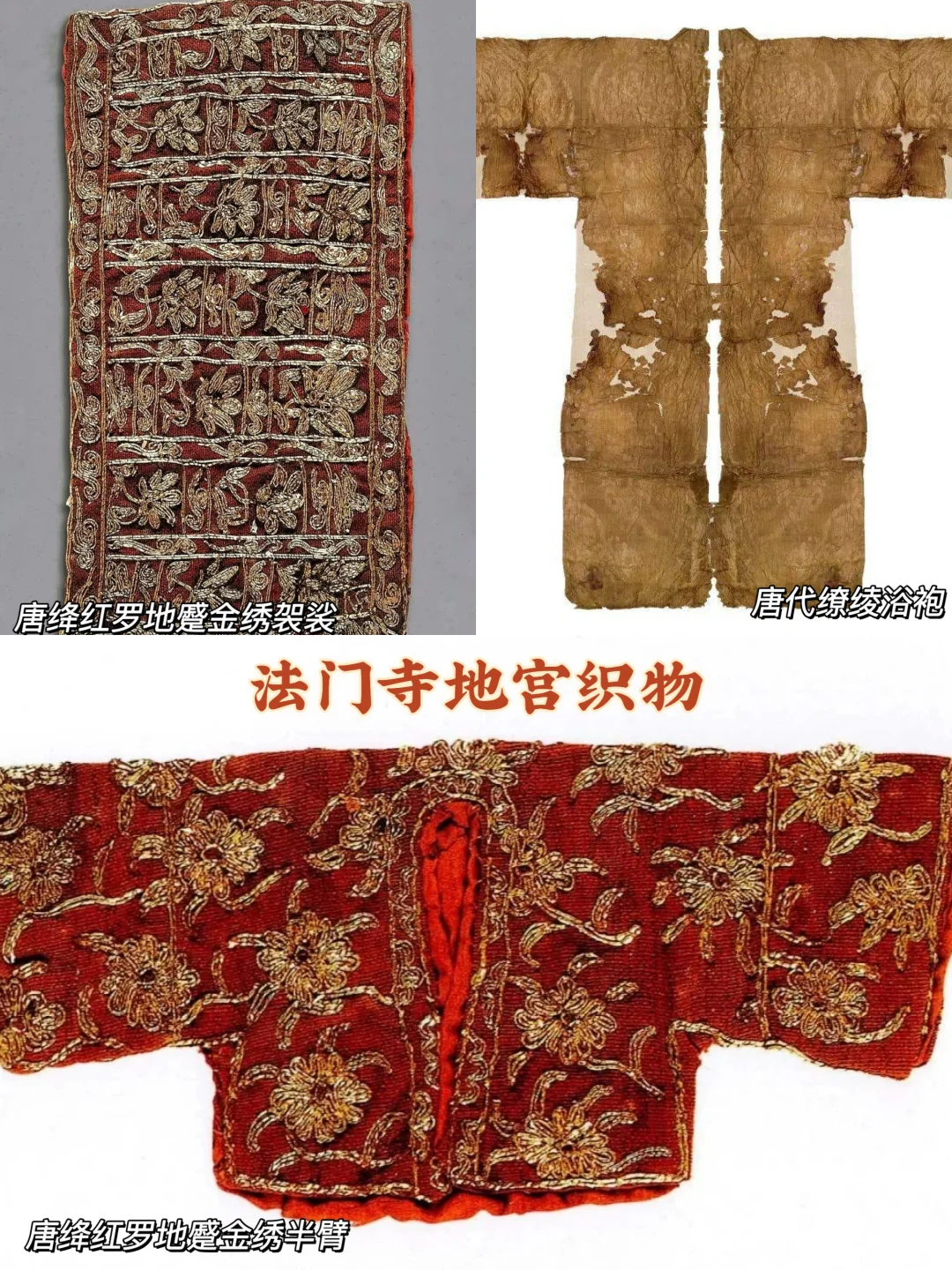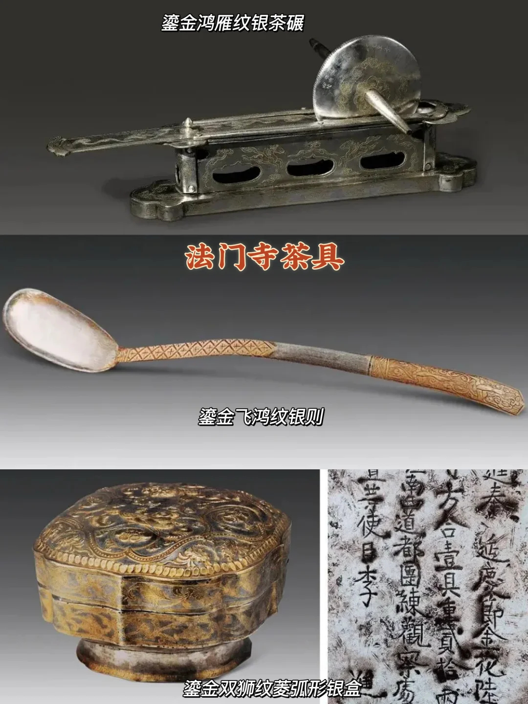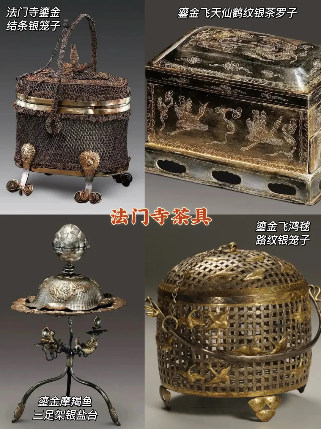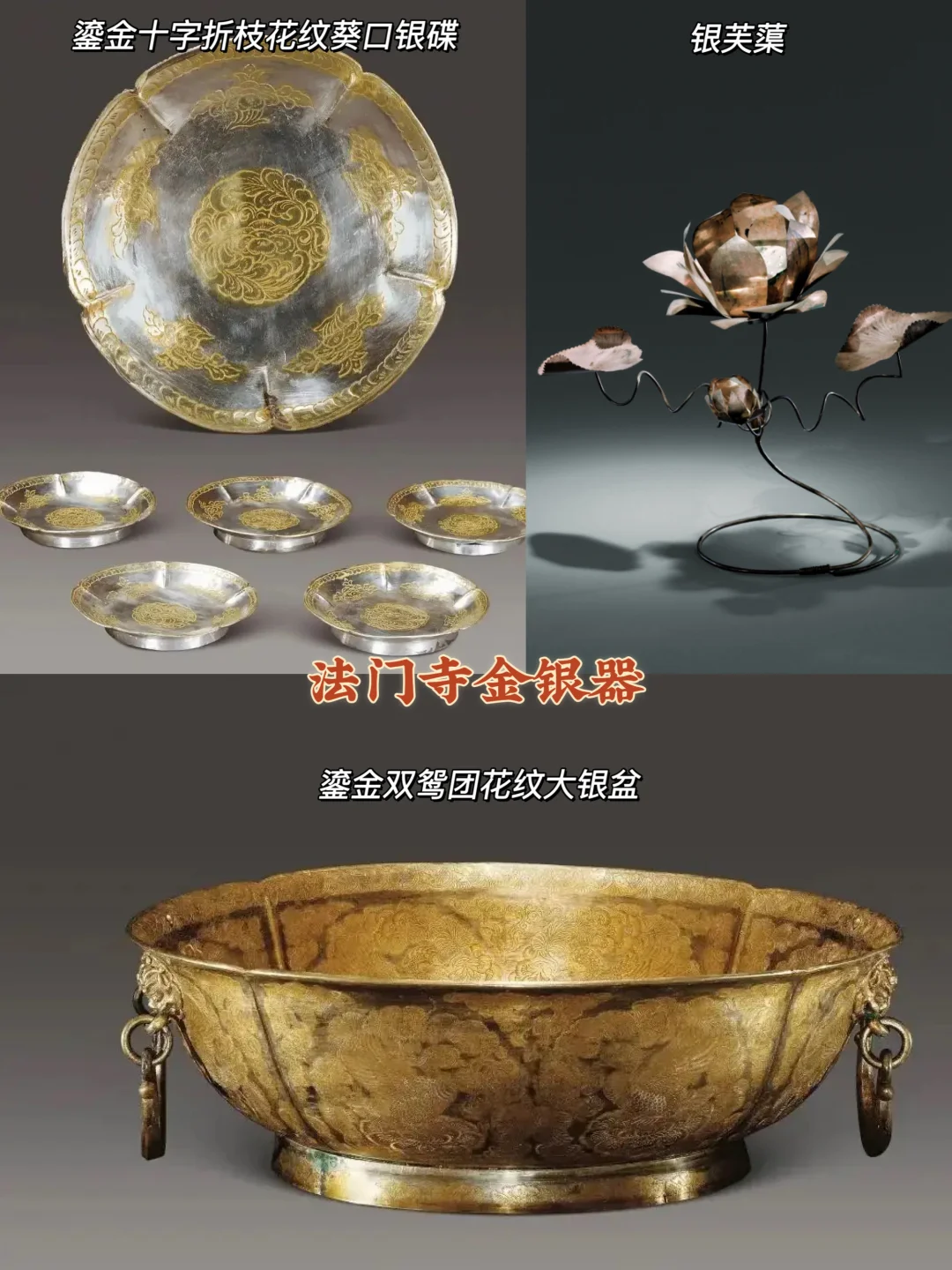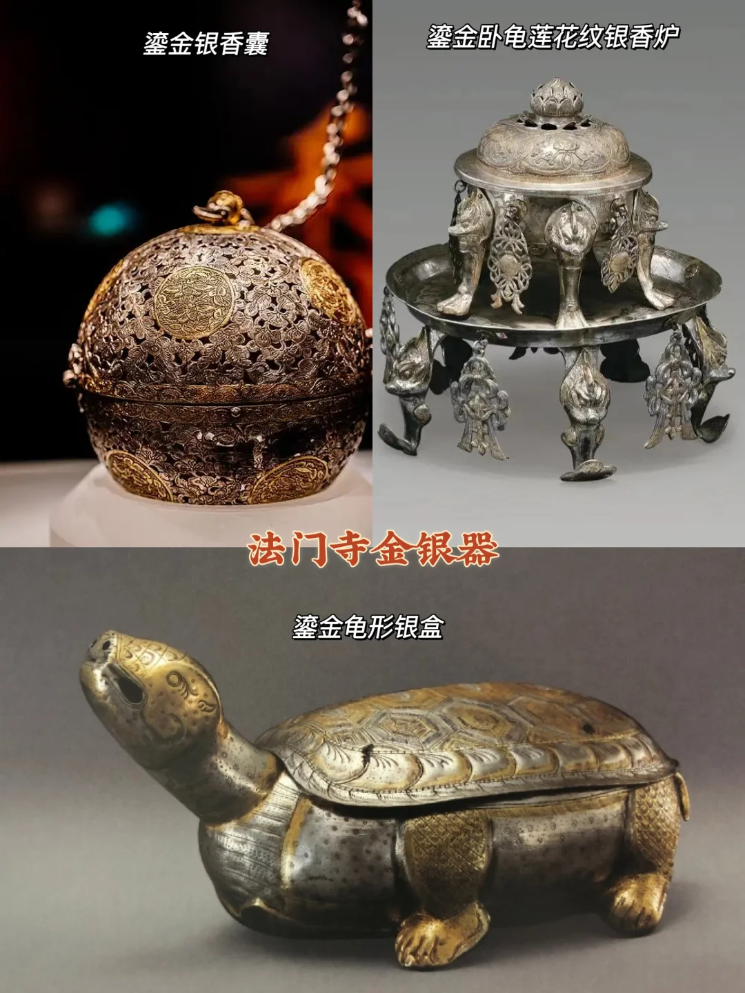 🔹如今位于陕西宝鸡扶风县的法门寺始建于东汉桓帝年间,原名为“阿育王寺”,供奉着释迦摩尼的佛指骨舍利。 自北魏开始,这里不断扩建,即便经历过数次灭佛损毁,依旧在唐代成为皇家寺院,并拥有了新名字“法门寺”。 法门寺之塔修于唐代,后于明代倒塌重建,80年代这里因暴雨坍塌,人们在清理塔基时,从石缝中发现闪闪金光,于是唐代地宫重见天日。 🔹通往地下的台阶铺满了“开元通宝”铜币,第一道门为巨大的朱雀门,里面立有石碑,记录着法事和供奉物信息。 第二道门后为地宫前室,地上堆砌着唐代皇亲国戚们的衣物,镶嵌着珍贵的金银丝和珠宝。 正中安置着白玉浮雕彩绘阿育王塔,塔周刻有菩萨、金刚力士、菩提树等图案,展现出盛唐雕饰水准。 而塔内的铜浮屠,则存放着鎏金伽陵频迦鸟纹银棺,一枚影骨舍利正安睡于此。 🔹第三道门后为中室,首先映入眼帘的是武则天时期所造的汉白玉灵帐,它饰有千姿百态的人神浮雕像和彩绘花纹,帐内铁函还装有影骨舍利。 之后在一个檀香木匣里,人们又发现了13件秘色瓷,包含了7只碗和6枚碟,如冰似玉、绿云染春,证实了该瓷种的真实存在。 🔹第四道门后便是后室,这里汇聚了众多珍宝,有各类金银宝器,包含了鎏金卧龟莲花纹银香炉、鎏金银香囊、‌银芙蕖、鎏金龟形银盒、迎真身银金花十二环银锡杖等。 也有完整的唐代金银茶具,像是银笼子、风炉、茶槽子、碾子、茶罗子、匙子等器物,呈现出唐僖宗的茶道爱好。 此外,还有20件琉璃器皿,其中18件都具有典型的东罗马或伊斯兰风格,可见丝绸之路的贸易繁盛。 🔹另一备受瞩目的宝物是八重宝函,分别为檀香木函(已残破)、四天王银宝函、素面银宝函、坐佛银宝函、六臂观音金宝涵、嵌宝石珍珠金宝涵、仿玉石函以及纯金塔,塔内便供奉着影骨舍利。 位于后室下方,还有一个秘龛,这里便是佛祖真身舍利所在地,而其余影骨舍利,均为玉石或佛家七宝仿制。 它被储存于五重宝函内,第一重是已腐朽的铁函,第二重是鎏金金刚界成身会曼荼罗宝函、第三重为檀香木函、第四重是嵌宝石水晶椁子、第五重为白玉棺。 法门寺地宫是世界上迄今为止发现年代最久、规模最大、等级最高的佛塔地宫,当它被打开的那一瞬,人类对永恒的不朽追求,便重新焕发出光芒。