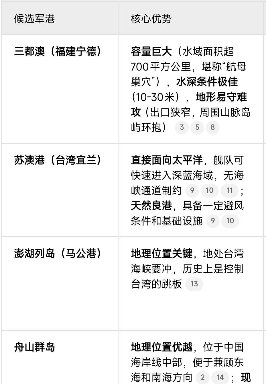 福建舰入列,和山东舰一起挤在三亚,属实有点憋屈!将来怎么也要另选母港! 网友在地图上找了一圈:有四个备选方案,三都澳、苏奥、澎湖、舟山群岛 宜兰的苏奥虽好,直出太平洋,但太突前了,缺防御纵深,易受舰队袭击,而且又常年台风,周边又没有大港口和工业基地,安全补给都是大问题 三都澳就不错,水域超700平方公里,水深普遍超10米,地形易守难攻,作为终极母港,潜力巨大。就是目前出路受限,向东出海通道被台岛阻挡 当然,统一后这都不是事!最理想的格局,以三都澳为总后方,在苏澳建立出击基地,作为航母编队直入太平洋的快速通道 那样,真能来去自由,横扫整个太平洋了