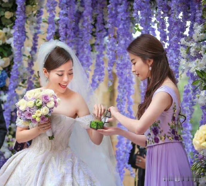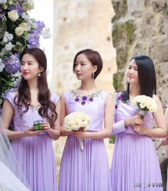 刘亦菲第一次当伴娘的照片,非常珍贵了,值得珍藏。 图二是当年张靓颖的婚礼,刘亦菲当伴娘递戒指给新娘时的照片,伴娘服选得也很用心了,紫色的伴娘服拍照也很好看。 其实还是挺期待刘亦菲穿婚纱的样子,不知道会请谁当她的伴娘呢? 刘亦菲出道23年,只跟过宋承宪传出绯闻恋情,其他男星似乎都没有谁跟她传过绯闻,还是非常好奇,究竟是谁可以俘获神仙姐姐的心呢? 你们期待刘亦菲穿婚纱照的样子吗?