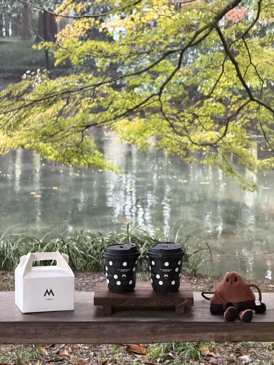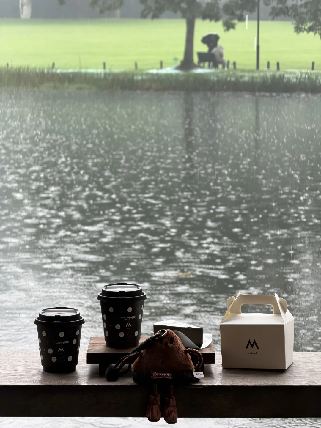 躲雨时点了M Stand周年限定的黑芝麻巴斯克拿铁,醇厚黑芝麻香气混着巴斯克芝士厚奶香,还有浓郁巧克力、坚果、烤栗子风味,口感平衡丝滑,喝着暖身又养身,感觉喝完头发都要变多啦~还入手了双杯套餐,get绒绒躺赢包挂,棕色的jellycat风超可爱,能当手机支架,实用性拉满,周年限定真的很有诚意!
