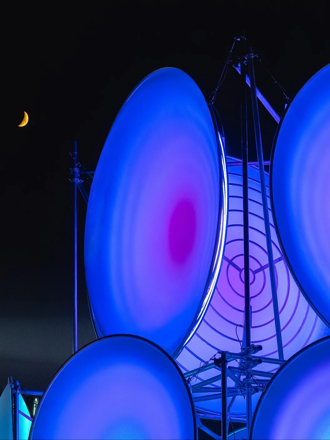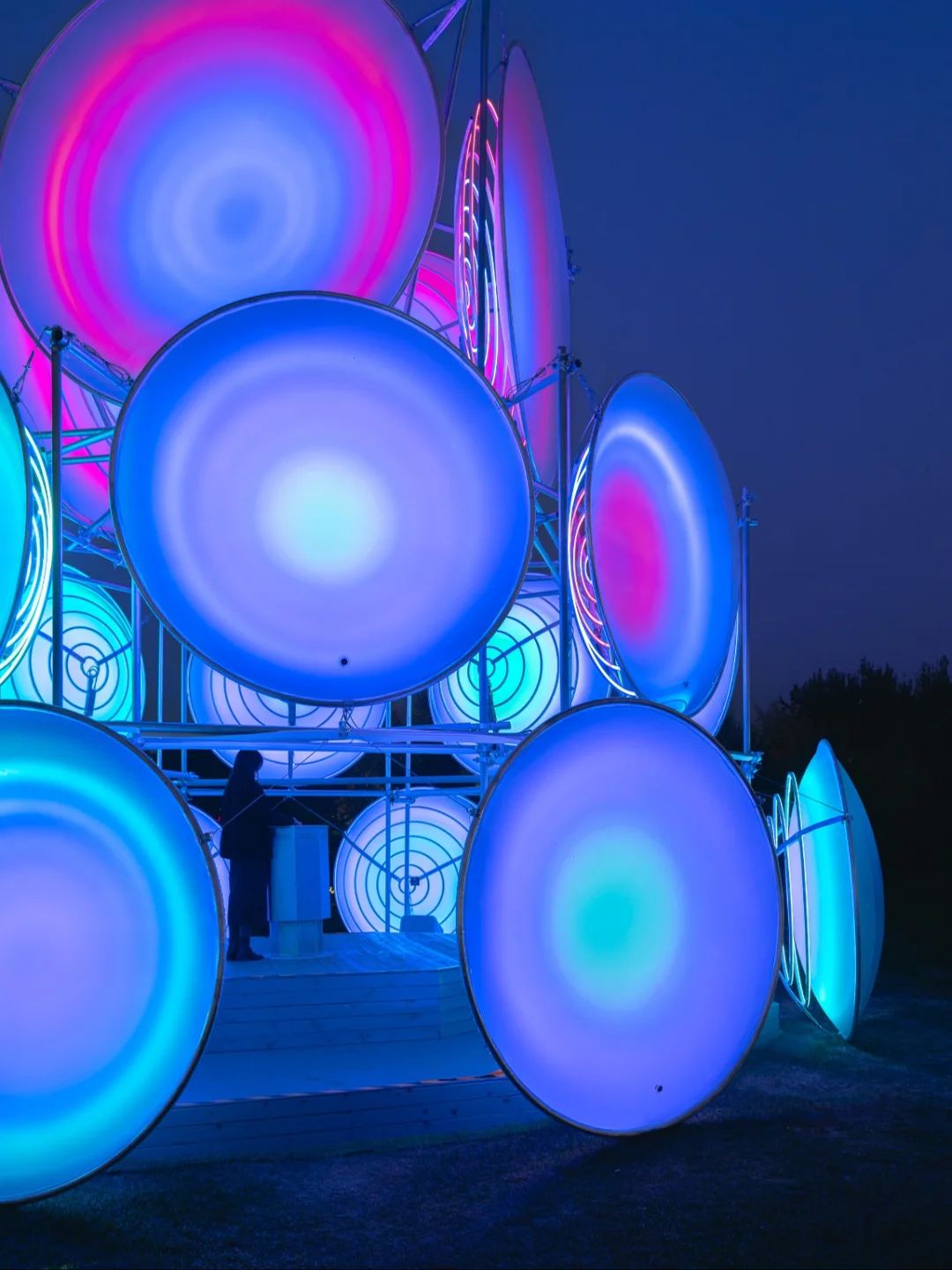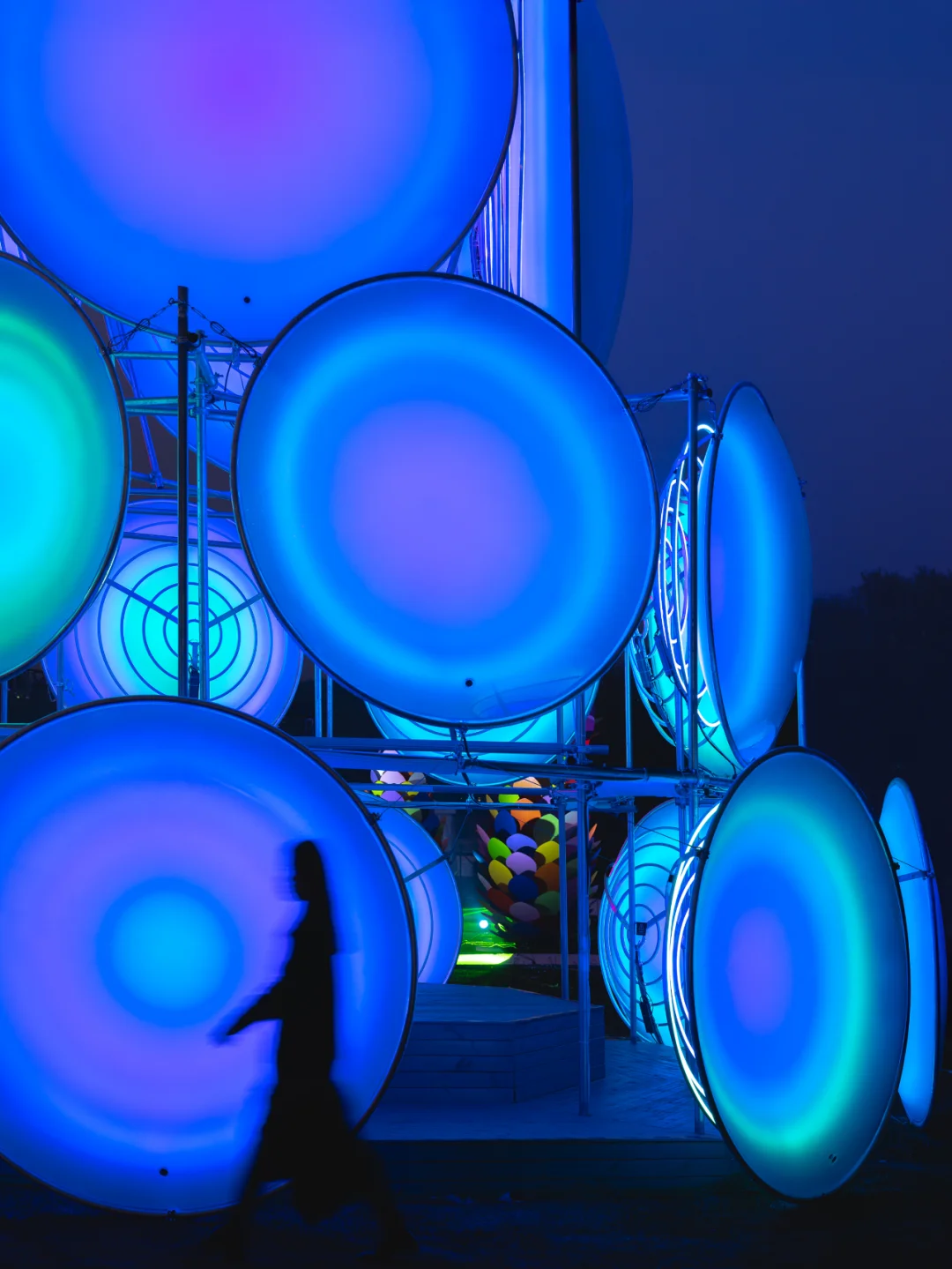 2024年秋,大星吉子设计工作室的装置作品“露珠塔”亮相于北京朝阳国际灯光艺术节奥林匹克森林公园展区。二十颗透亮的“露珠”,凝结为一座直径9米、高7.2米的塔形结构。