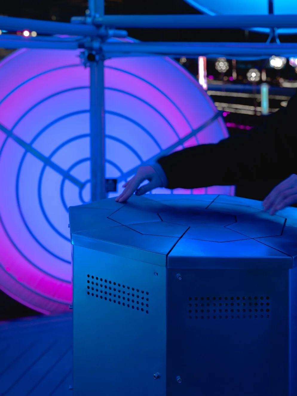 白日里,装置在自然光下呈现水滴般清澈的质感;夜幕降临时,光影如涟漪泛起,邀请人们靠近、徜徉,更能在塔中心触发装置,让乐音与光影交织互动。露珠塔是对自然的礼赞,亦是对现代生活中失落的宁静的追寻。