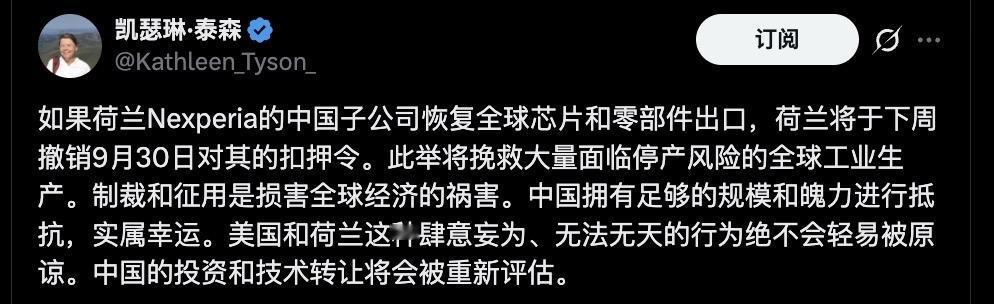 荷兰政府最终还是向我方下跪了! 如果中方允许安世半导体的芯片恢复出口,荷兰准备暂停一项由荷兰政府接管该公司控制权的命令。这意味着一切都将回到原点,闻泰科技继续接管安世荷兰总公司。 中美达成休战协议,并在中方恢复对欧洲的芯片出口后,安世荷兰却发出通知称不保证安世中国对欧洲出口的芯片产品的技术水平和质量情况。 荷兰总部耍的小手段是为了离间并切断安世中国和欧洲客户之间的联系,同时荷兰政府还在另一份声明中称他们正在找能够接收安世中国的运营商。而现在发现欧洲客户根本不买荷兰政府的账。荷兰政府只能无奈接受尴尬现实。 准确的说,在荷兰政府没有找到其他运营商能接手安世中国这一块的工作后,荷兰政府最终还是放下尊严接受低头认错这样的尴尬现实。荷兰政府之前有多嚣张,现在就有多丢人。全世界大骂荷兰政府的无耻,成为配合美国打压中国最终搞乱全球芯片供应链的罪魁祸首。安世半导体公司 荷兰安世半导体 荷兰安世事件