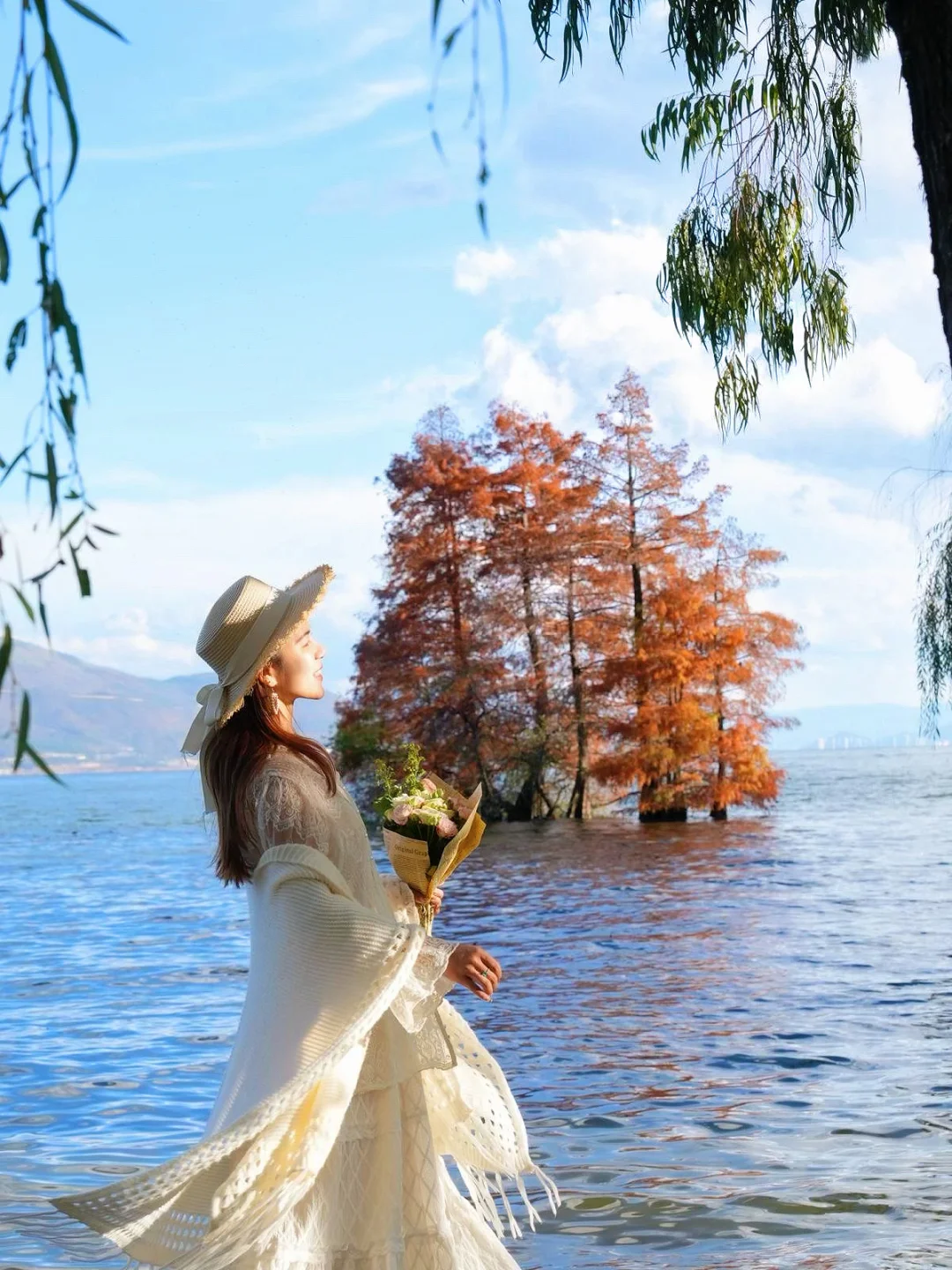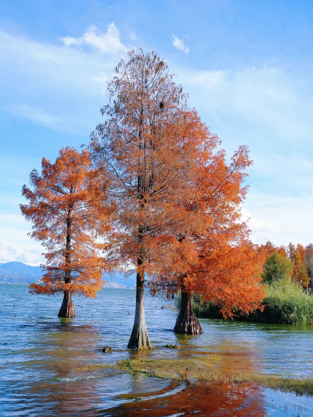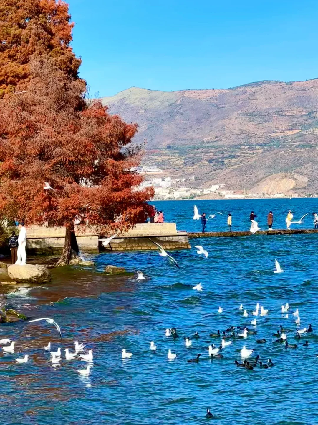 - 想看海鸥的小伙伴可以行动起来了 大理的秋天千万不要错过🥹 秋天的大理简直是人间理想[自拍R] 深蓝色的洱海,橘红色的红衫,飞舞的海鸥 有什么值得让你错过如此美景呢[哇R] - 分享几个打卡点给接下来准备去大理的小伙伴 记得点赞收藏哦🥰 - 🍁廊桥桥洞 出片极高,每一个桥洞都可以出片,透过桥洞看到红杉,很是好看🐦‍🔥 🍁水边森林 这里是一片水中森林,不论是靠在树上还是站在前面空地上随便一棵树都很好看~ 🍁孤独的树 站在水中和其他树丛形成鲜明的对比,阳光洒下来真的很好看 🍁水中弧形树 网红打卡点,出片嘎嘎好看 🍁下波棚 这里的人非常少,可以直接过来拍。岸边的红杉树很茂盛 🍁环海西路 去廊桥的一路其实都很美,不必太执着于某个点位,随便拍都很好看 -