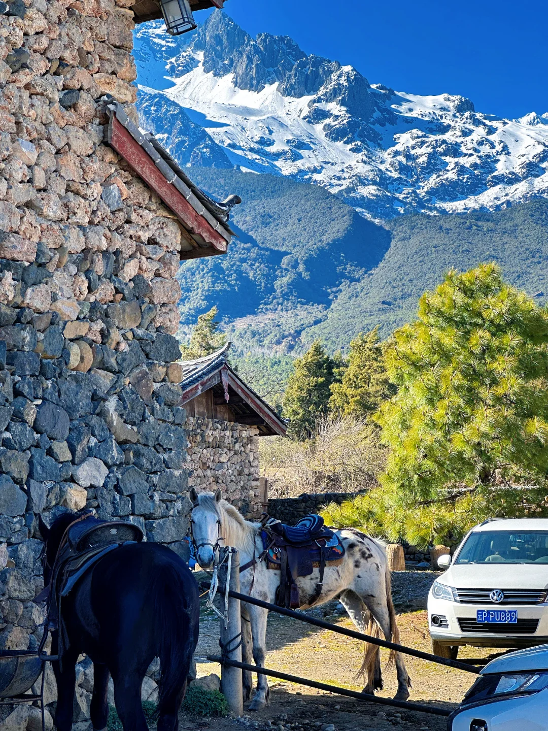 - 云南旅游千万不要错过淡季的丽江❗️ 不得不说真的很幸运👍 这次旅行不仅躲避了人群拥挤 还看到了日照金山🌅 - 没来之前已经看到了关于玉湖村的各种图片🥳 也让我对这里充满了期待🫣 - ✅为了方便接下来要来的小伙伴我特意整了了玉湖村一日游线路攻略,希望可以帮到要来还没有来的你🤗 - ✔️线路:三义机场➖璞石民宿➖纳西家访➖环湖骑马➖放马火塘餐厅🍲➖璞石民宿➖日照金山🌅➖雪山 下午茶☕️ 🖤璞石民宿在玉湖村里面,可以让司机直接送到门口哦,民宿可以直接看玉龙雪山日照金山,而且非常出片,民宿除了房间可活动的公共区域多,性价比很高 🖤纳西家访可以体验手工磨豆腐,造纸,民族服饰等活动,沉浸式感受纳西族文化(ps:可让民宿工作人员帮报名,店家会来民宿接) 🖤环湖骑马第一次体验还是很有趣的,它们真的很乖,最主要骑马的少年真的好帅啊!🤩 🖤吃饭我们选择的是跑男同款火塘餐厅,放马餐厅的面包也很好吃!现烤真的很香 - 🥰龙女湖拍照真的只需0帧起手,偌大的雪山就在眼前,想要看玉龙雪山的小伙伴不妨来这里看看~ -