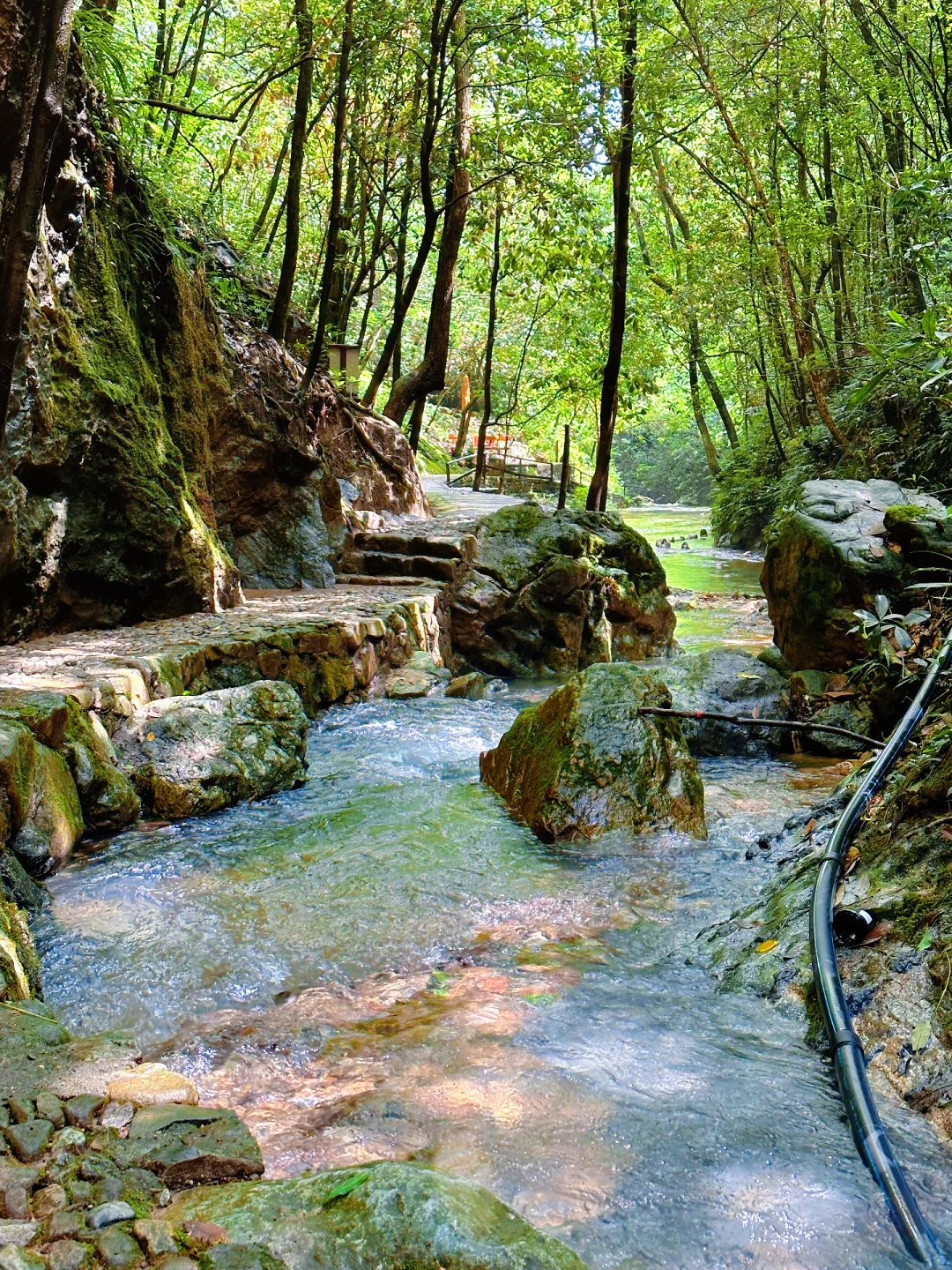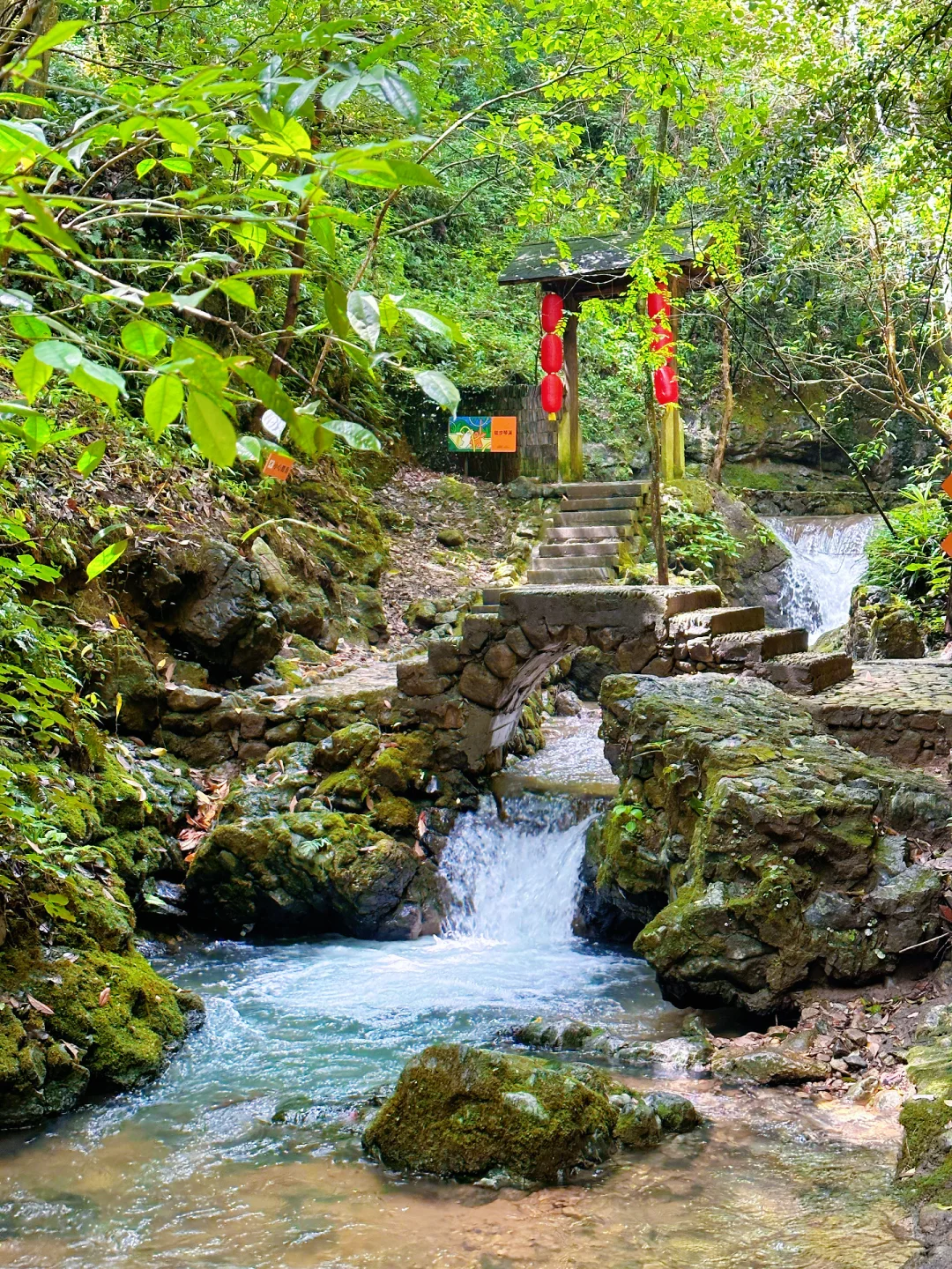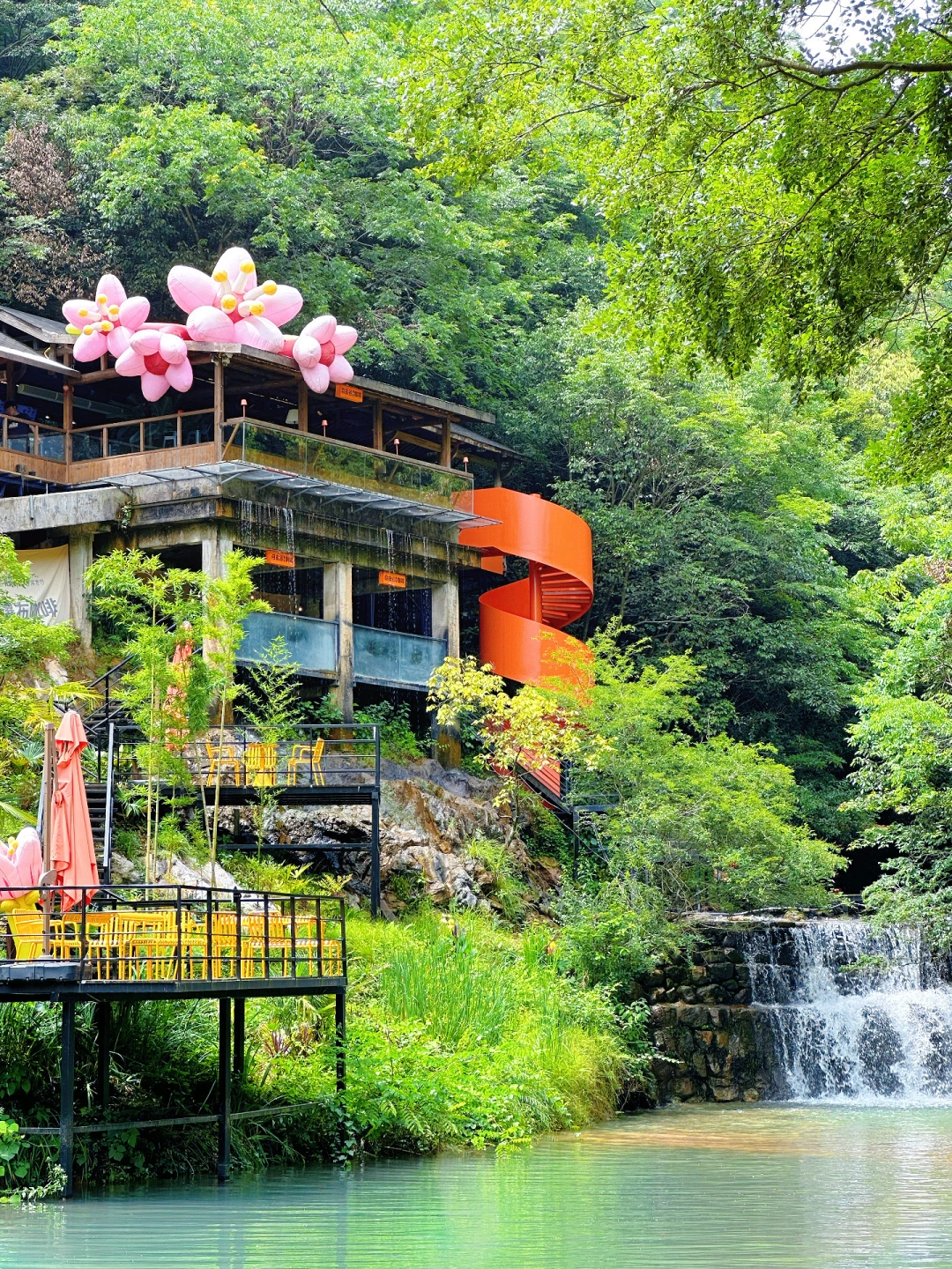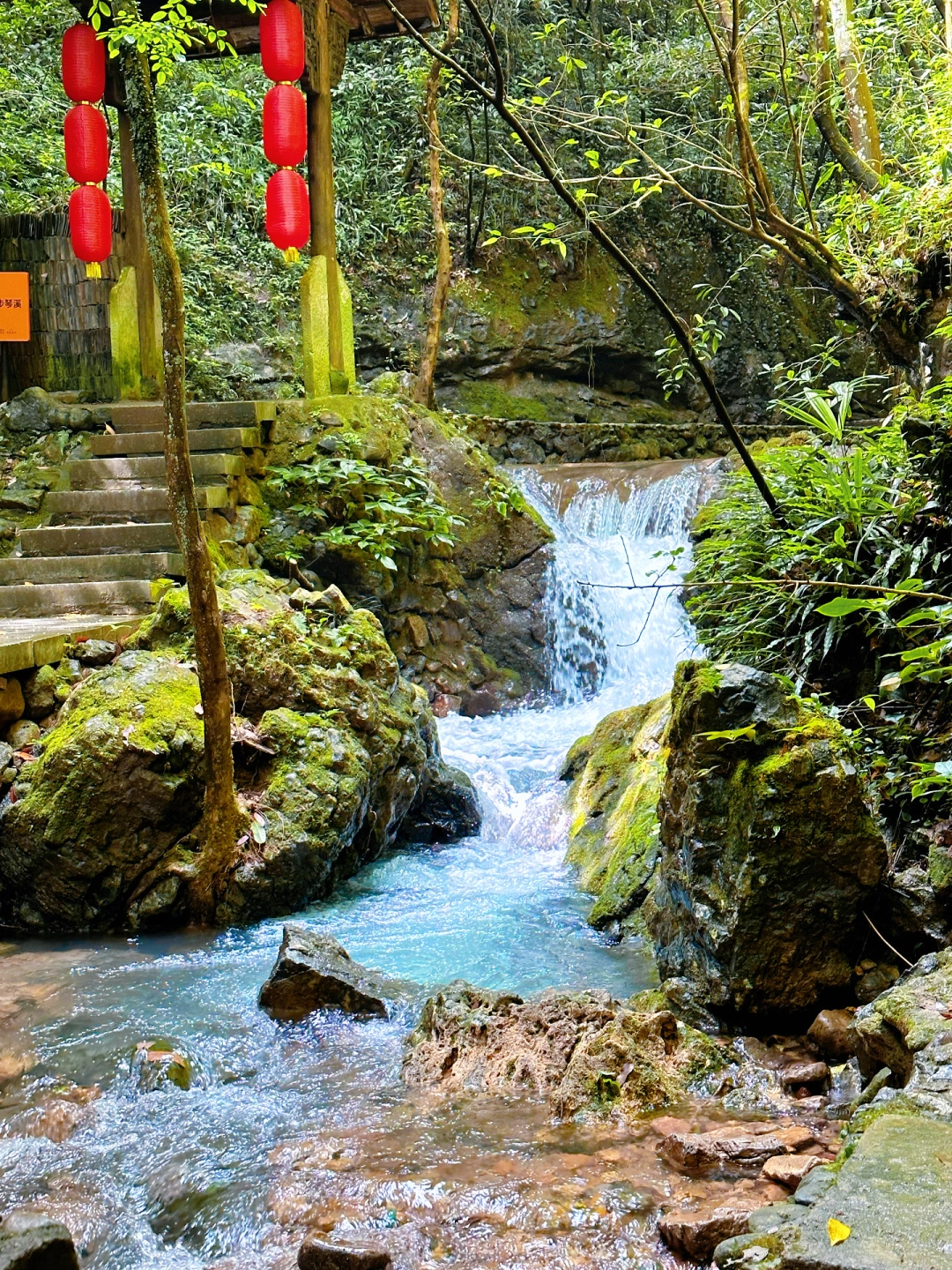 - live实拍?? 好想分享给你们,又怕你们都知道了?? 这里真的像极了小时候最爱去的小溪边 一边光着脚在水里走来走去 一边拿着网抓小蝌蚪 主要人真的很少 来这里徒步或是溯溪都很适合?? 景区还有咖啡店 i人天堂