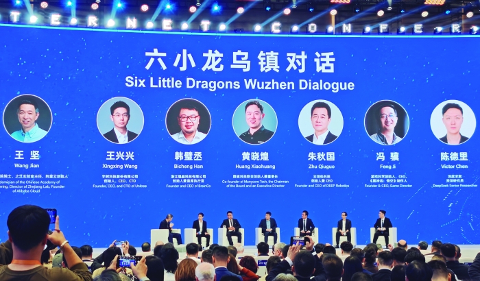 11月7日乌镇峰会主论坛上,“杭州六小龙”首次齐聚乌镇,六家企业代表同台对话,分享创业、成长经历,探寻技术对人类美好未来的赋能。