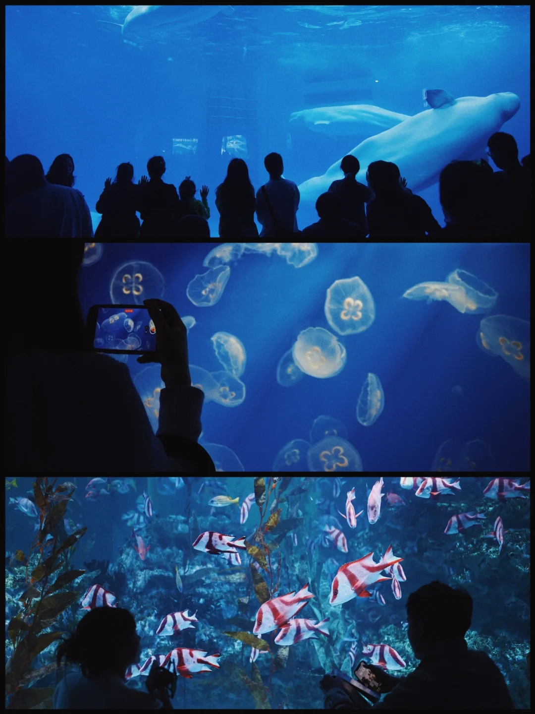 🌸点位:室内:鲸豚馆、鲨鱼馆、水母馆等这几个地方最出片。