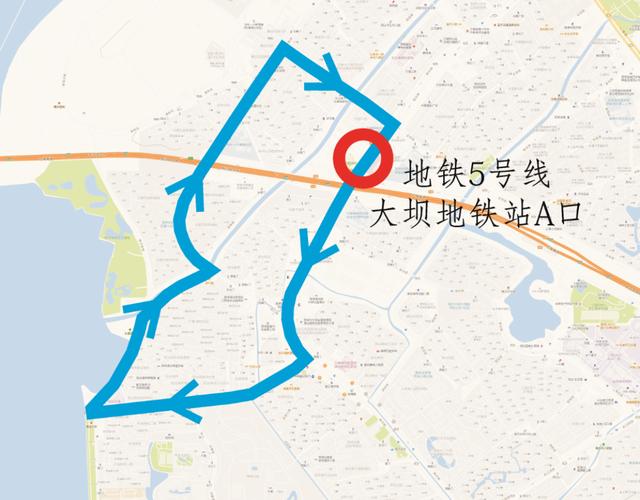 地铁5号线大坝站A口(起始站)——地铁5号线大坝站A口(终到站)