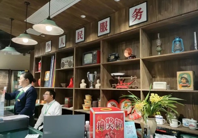 店内精心还原的七八十年代供销社场景,唤起时代记忆。