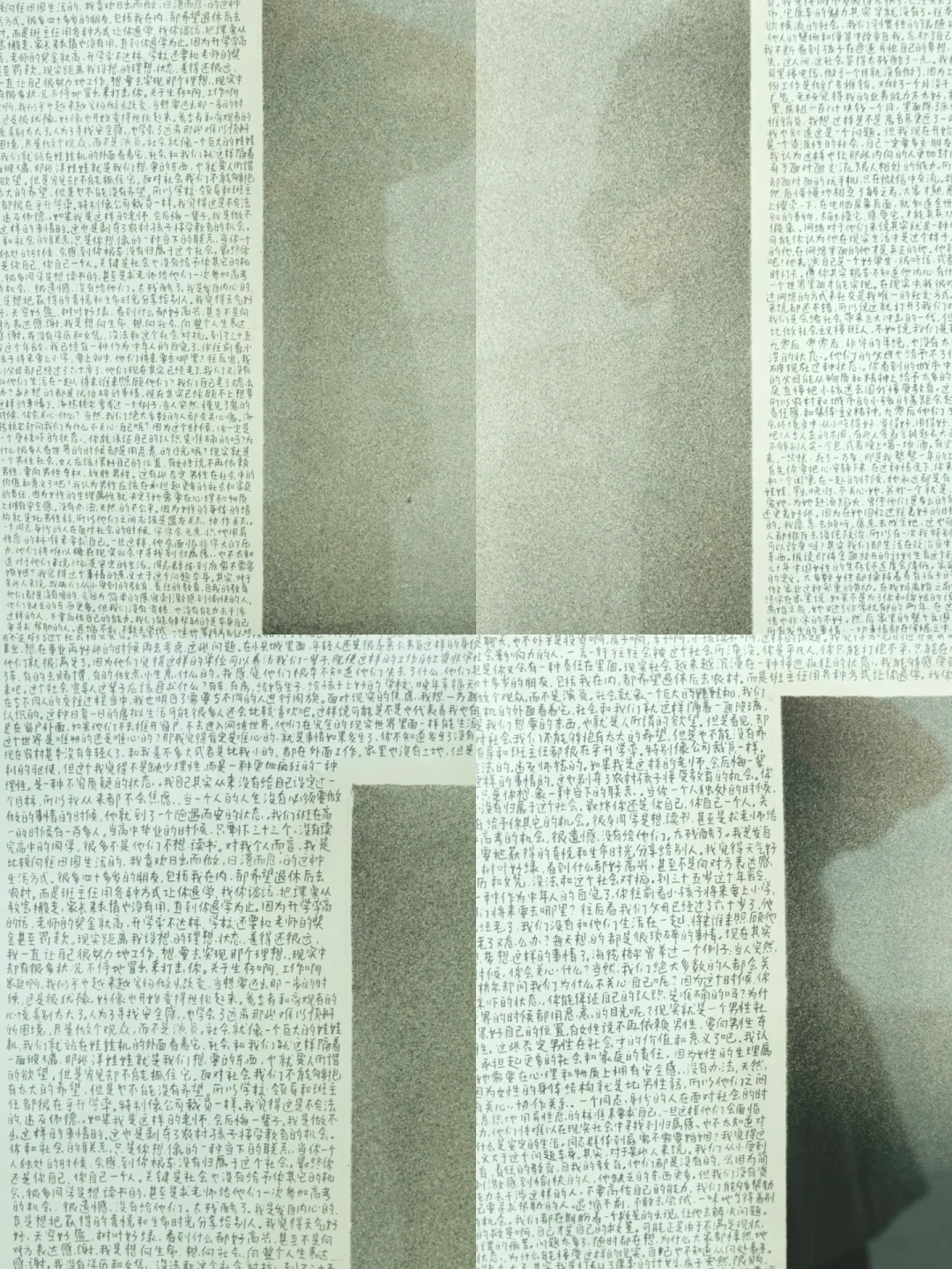 2️⃣《某年某月某日 日记六篇》。这是六张巨大的照片,但是工作室因为一些意外,照片差点被毁掉,不过最终照片又从工作室抢救了出来了,上面的水迹💦,污点,折痕和划伤都是照片意外时特有的痕迹,展板上的一段话,让我感同身受:“在我看来,作为物件的照片和人一样都是有生命的,不断生长,日复一日地面对着冗长而复杂的生活”