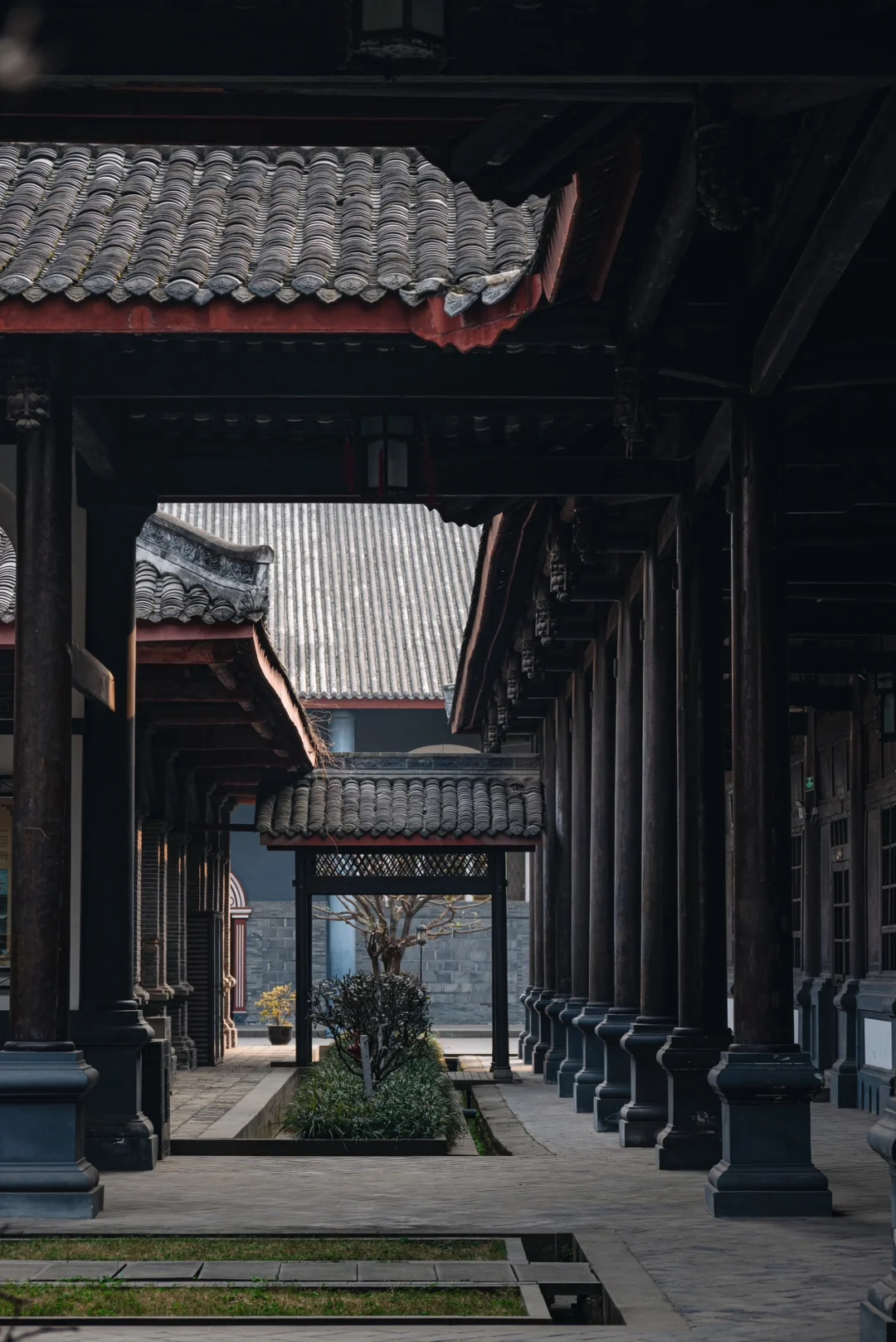 5️⃣根据成都的气候因地制宜,平房瓦顶、四合头、大出檐成为民居的主要形式,而宽敞的屋檐走廊,可以避雨遮阳。
