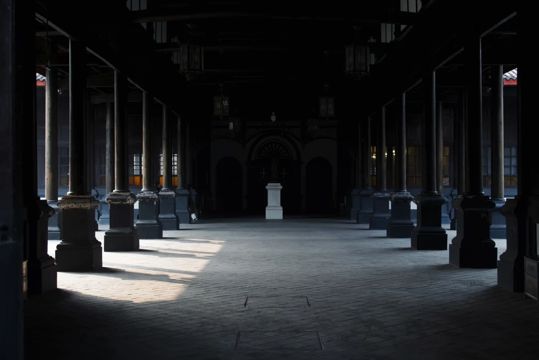 2️⃣教堂中的108根楠木廊以梁、柱、门窗、地板全部采用从邛崃山脉采运来的楠木,用材考究。