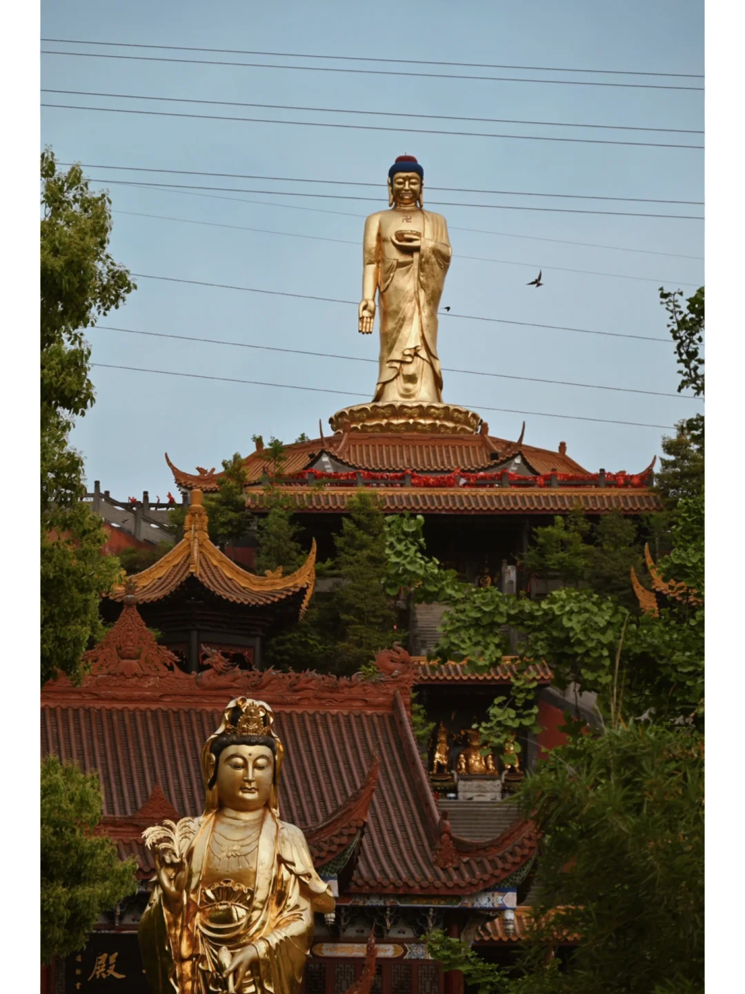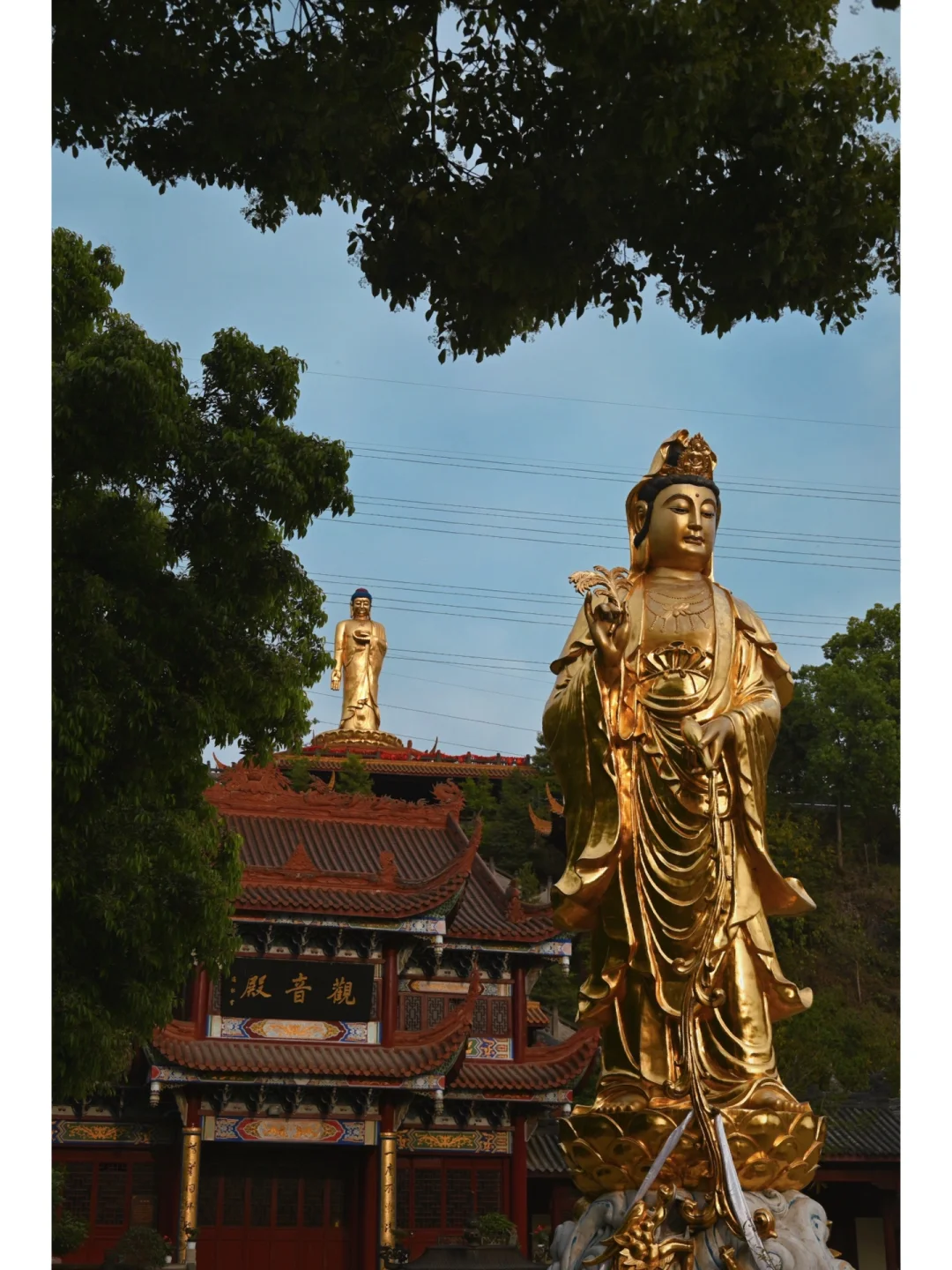🗿庄严大佛:山顶9.9米高的阿弥陀佛金身造像和寺中7米净瓶观音铜像,威严又肃穆,是白云寺的标志。一个远眺远方,一个注视眼前;一个杨枝洒水,净化凡尘世界,一个手持无量寿宝瓶,普渡芸芸众生。