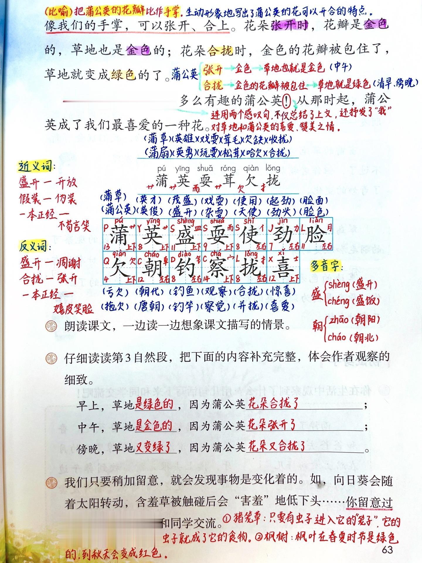 三年级上册语文《金色的草地》笔记。 课文主要写了哪些场景? 1、 兄弟俩在草地上玩耍的欢乐场景。 2、 长满蒲公英的草地上,早上、中午、傍晚颜色变化的不同场景。
