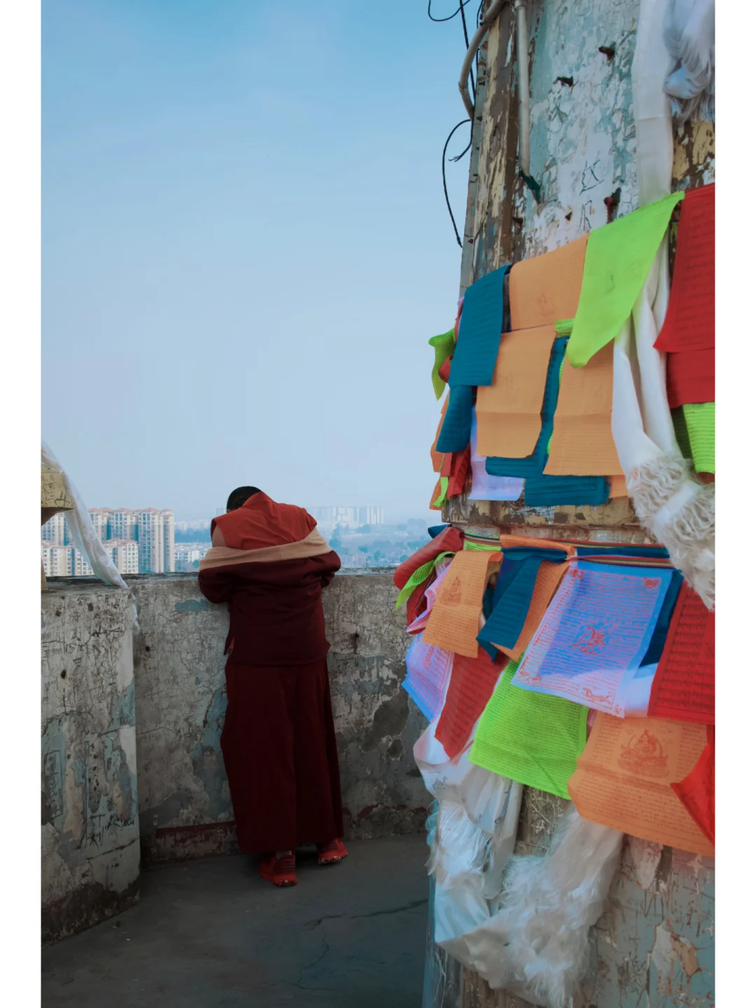 寺中原塔因为地震等因素于1992年被拆除(舍利塔旁边还有原塔的石头遗址),目前寺中的舍利塔是1997年修建的,新塔形制依照寺内原舍利宝塔模型而建造,主塔高81米,比乐山大佛🗿还要高10米,取佛家“九九归一”之意,一共17层,塔中有许多佛事相关造像及典故。主塔可以爬上去,塔顶视野开阔,可以俯瞰🔭彭州市区。龙兴寺宝塔四周还有回廊和转经筒,形成了印式与中式,藏汉建筑相应交汇的独特寺院禅林。