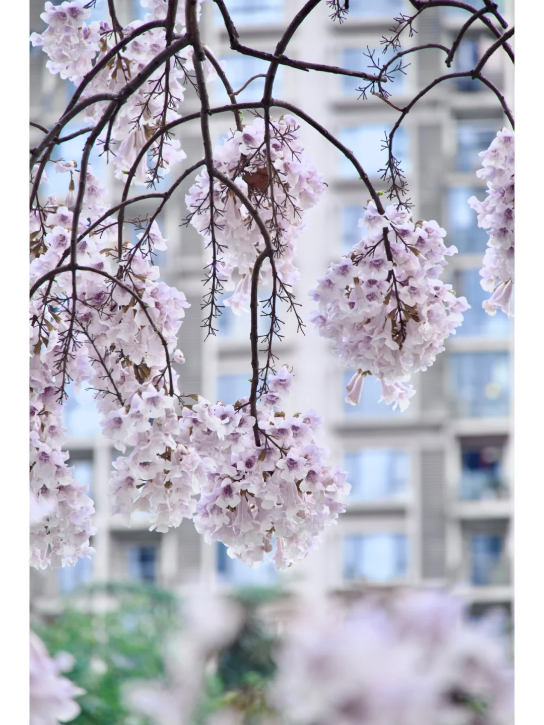 成都一年只有一次的泡桐树花瀑布来了‼️