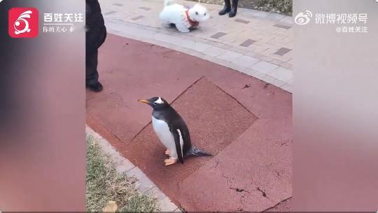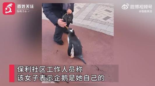 “有人溜企鹅!”11月7日,黑龙江哈尔滨,某小区里,一位女子牵着一只企鹅散步,该