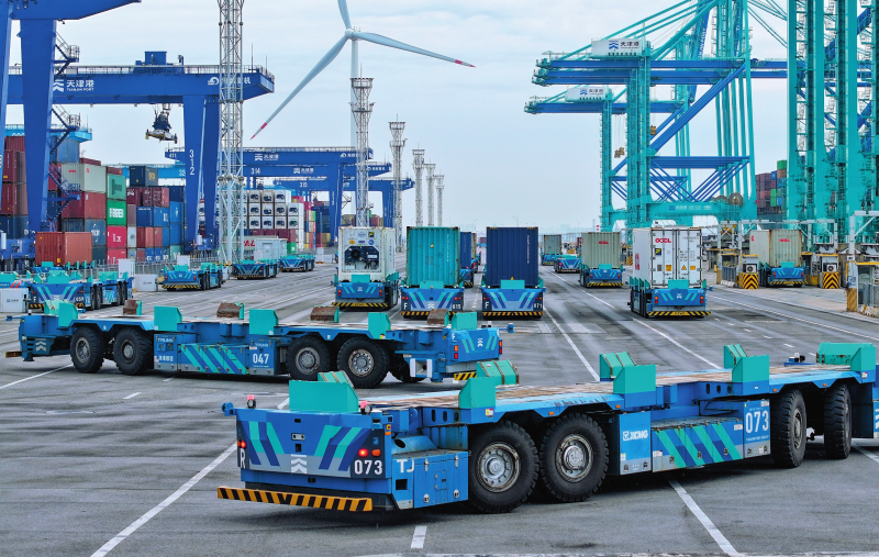 智能水平运输机器人行驶在天津港第二集装箱码头(2025年6月19日摄)赵子硕摄/