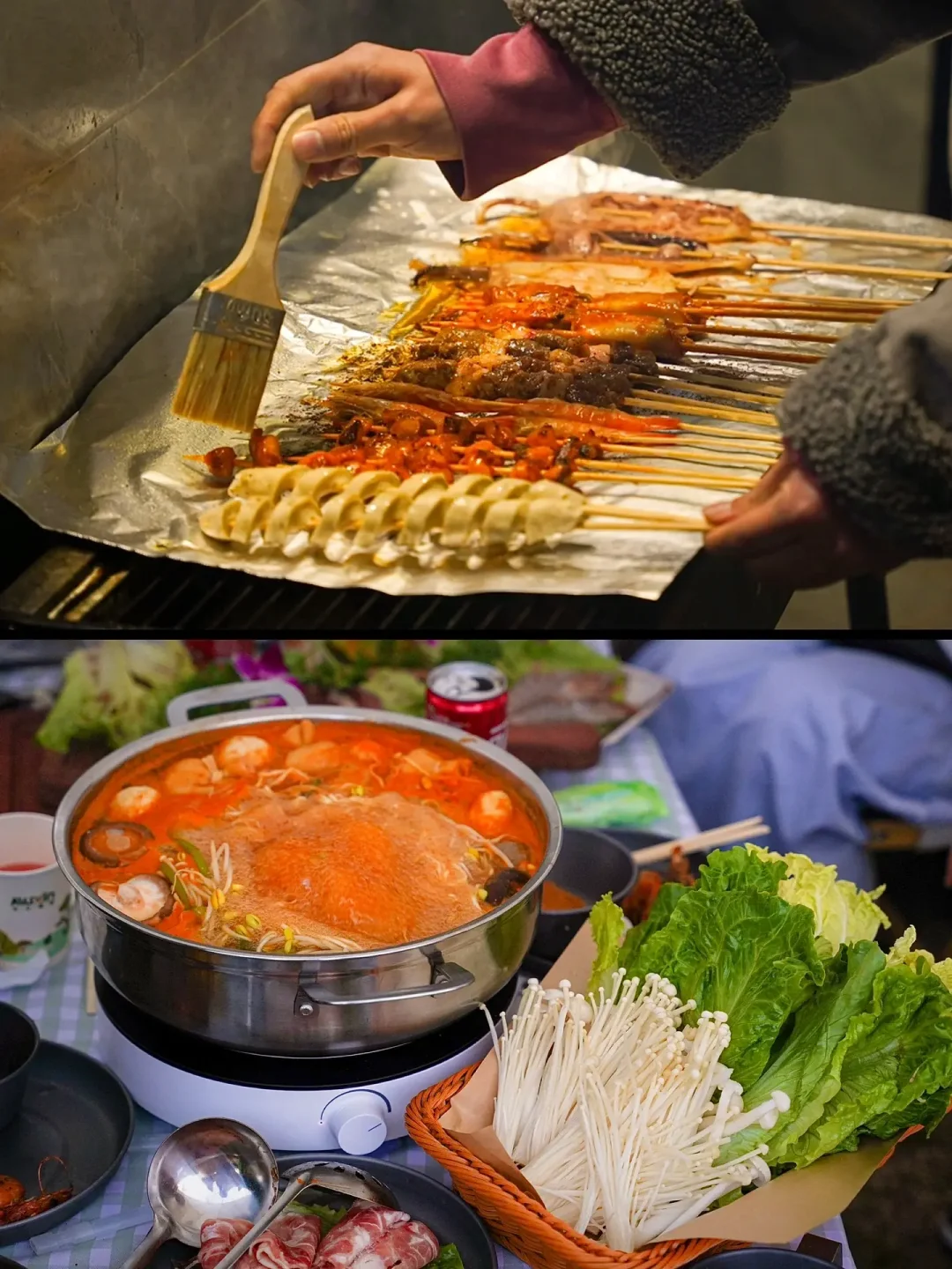 ❷美食:部队火锅/烤肉/果盘/自助BBQ
