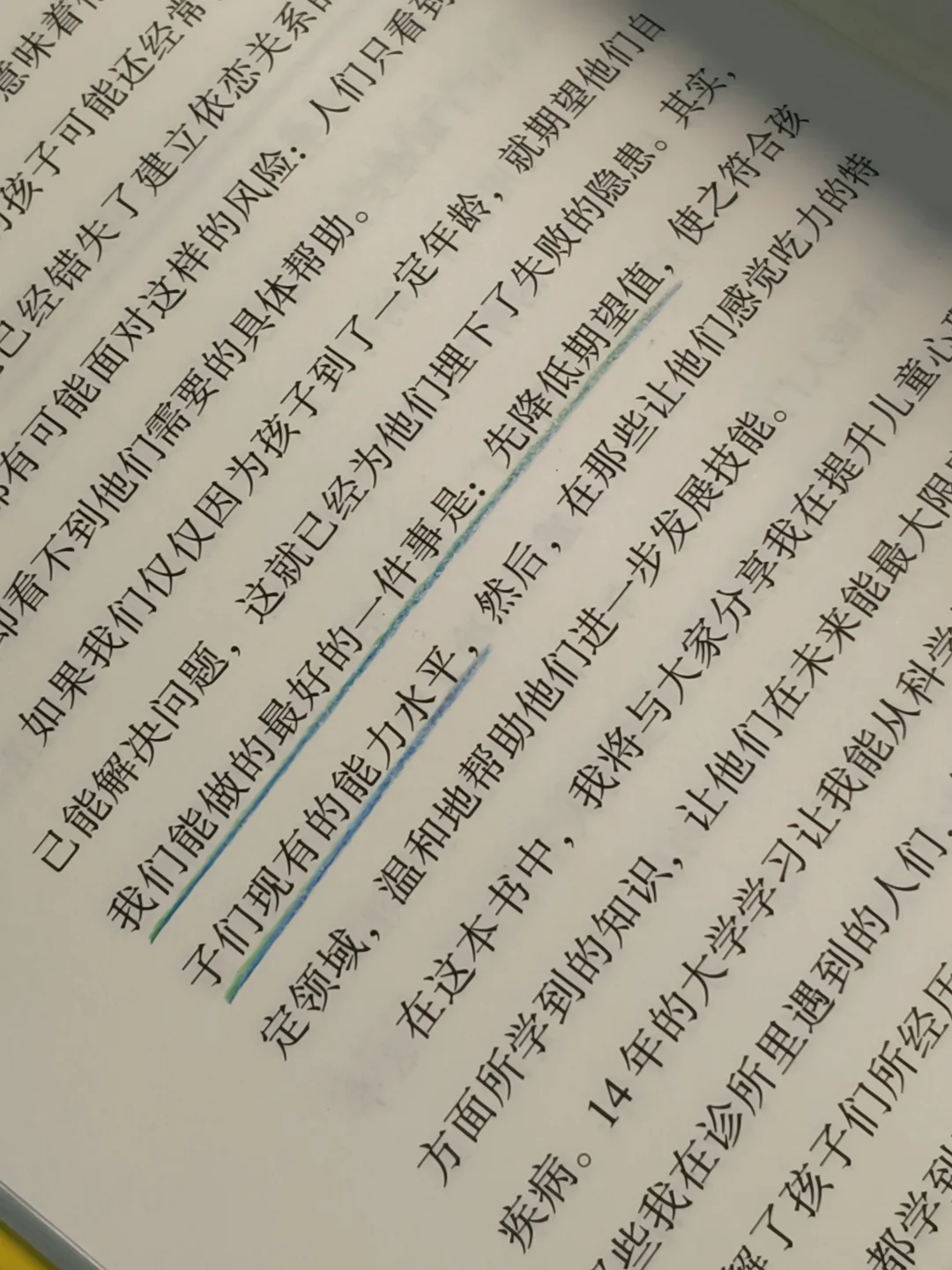 其实,早已经走入了误区。书中有一句话如醍醐灌顶,惊醒了我“作为家长我们能做好的一件事:先降低期望值,使之符合孩子们现有的能力水平。”