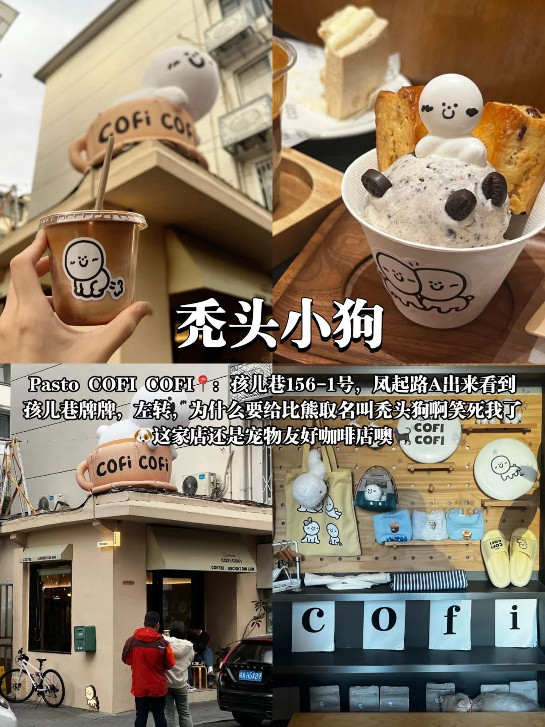 刚出凤起路A口就能看到屋顶上的巨型咖啡杯小狗!饮品和甜品都印着圆滚滚的秃头小狗logo