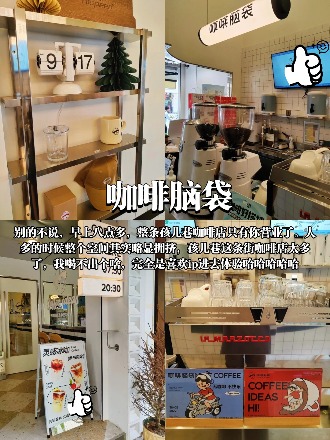 4️⃣咖啡脑袋,空间略挤但细节满分:墙上的“咖啡脑袋”灯牌+骑摩托的卡通IP超出片