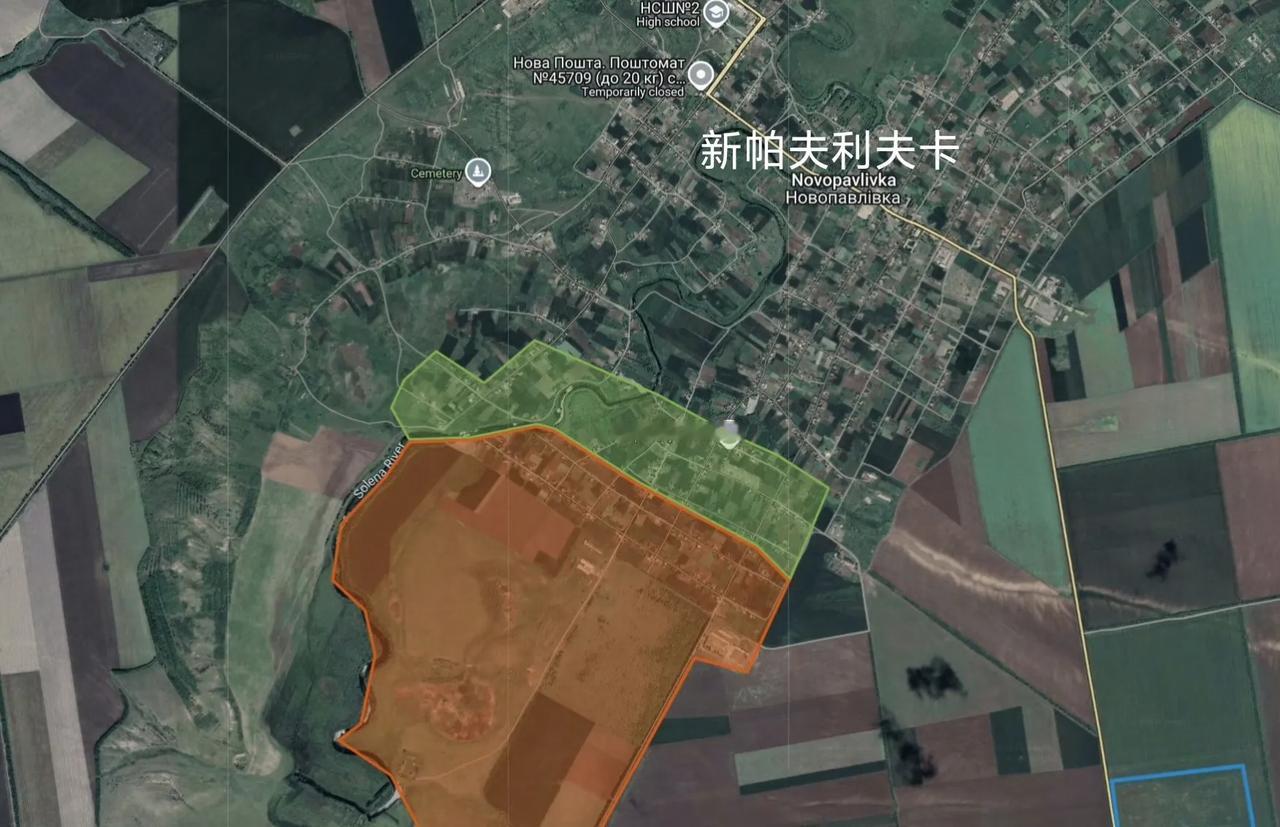 不同信源标注的俄军中部集群在第聂伯罗彼得罗夫斯克州的新帕夫利夫卡最新推进情况。其实没啥新意,俄军只要打进某座城镇,那么某座城镇的命运就是被拿下。 新帕夫利夫卡是第聂伯罗彼得罗夫斯克州东部的一个重镇,如果被俄军中部集群拿下,则俄军中部集群继续向西的进攻速度会更快。#俄乌冲突#