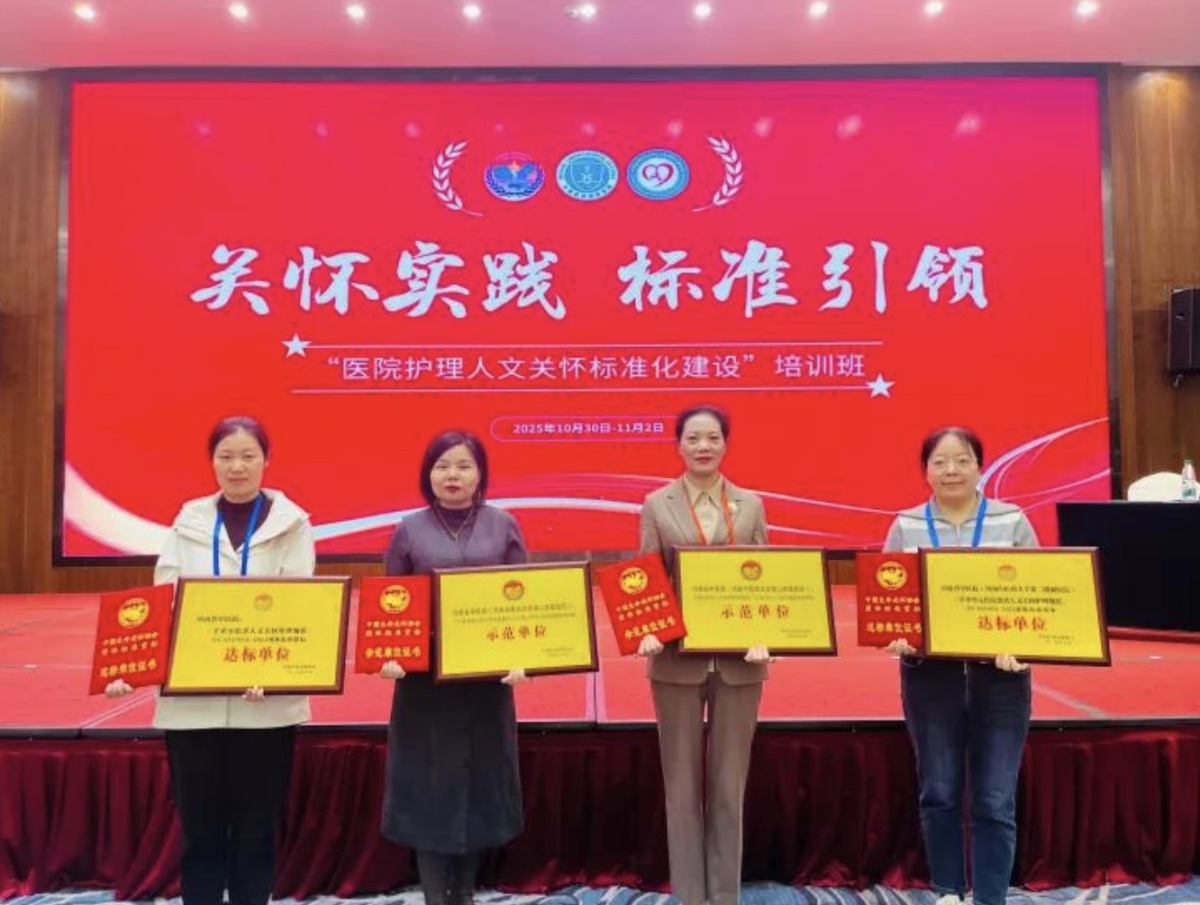 2025年10月29日~11月2日,由中国生命关怀协会主办、华中科技大学同济医学院附属协和医院承办的“医院护理人文关怀标准化建设”培训班在武汉召开。本次培训期间,河南省中医院凭借在中医人文关怀建设方面的扎实实践与突出成效,一举荣获四项国家级荣誉,标志着医院在该领域已跻身全国先进行列。
