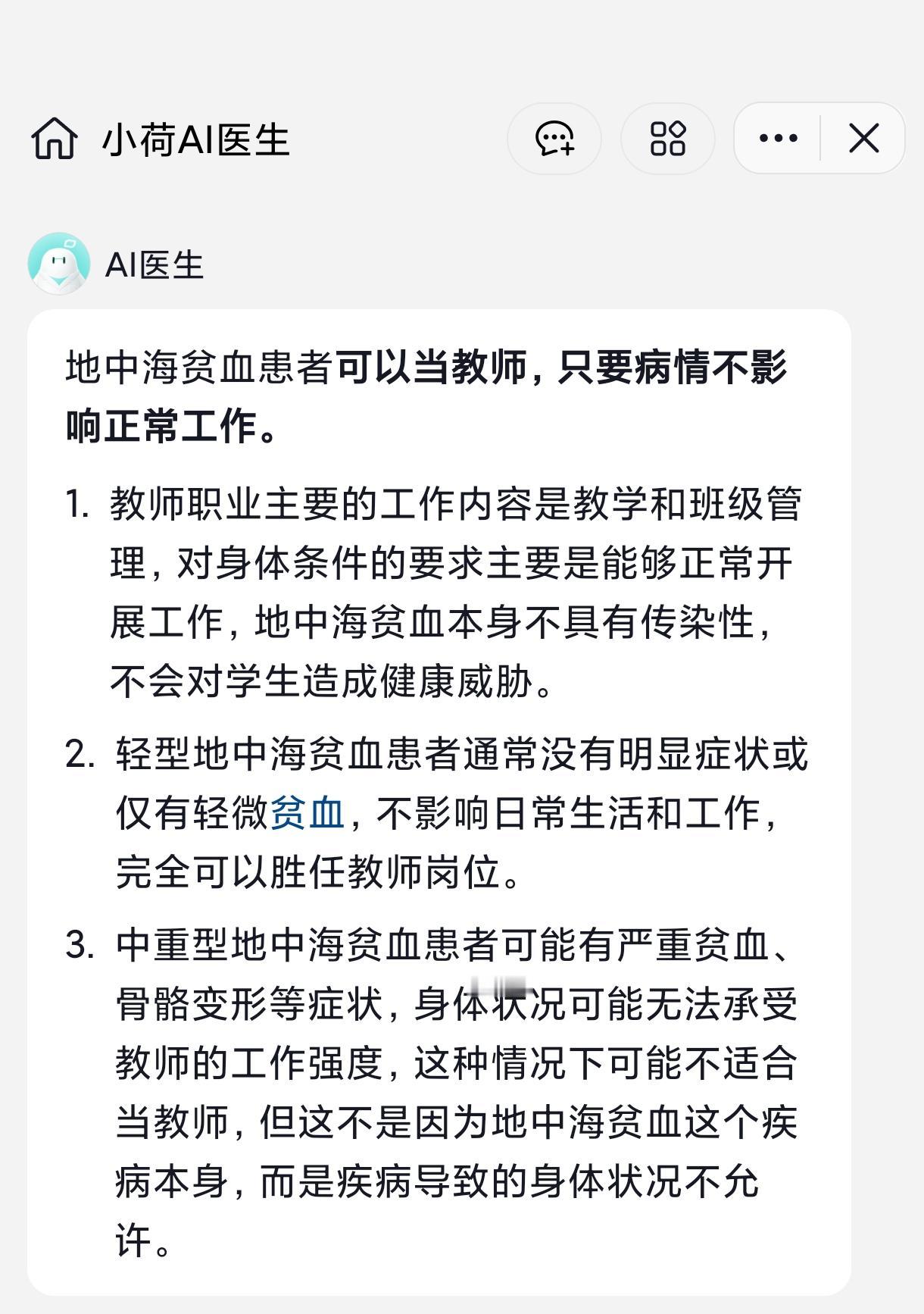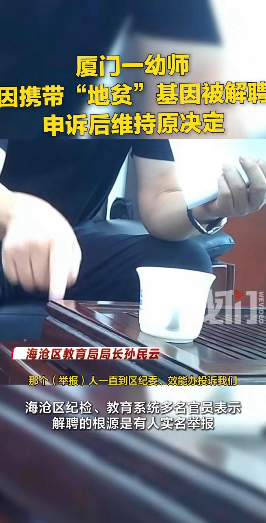申诉后仍维持 传染性强的艾滋病在全国捂得严严实实,没有传染性的地贫基因却成了被解雇的理由。 厦门一举报人一直实名投诉幼师携带地贫基因,教育局做出维持此前解聘她的决定。 哪个教师招聘条件里有排除地贫基因者的吗,大概率不会有吧,乙肝都不能作为解聘或者不录用的理由了呢! 这是说谁举报谁有理吗? 建议这位前幼师也一直去劳动监察,劳动仲裁去投诉教育局,不按规章制度依法治校。不能说谁难缠就给个枣,这是要不得的。 你说呢